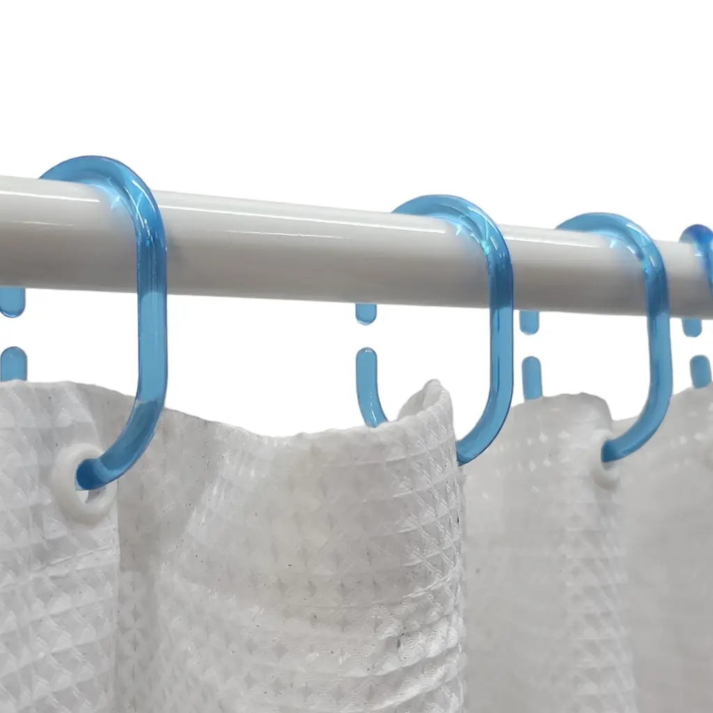 Evideco Shower Curtain Rings Plastic Hooks (Set Of 12) - Clear Light Blue