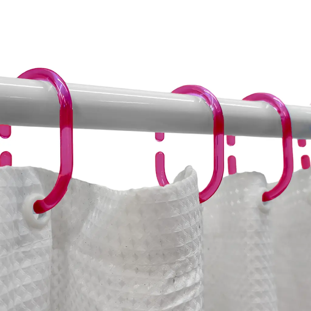 Evideco Shower Curtain Rings Plastic Hooks (Set Of 12) - Clear Pink