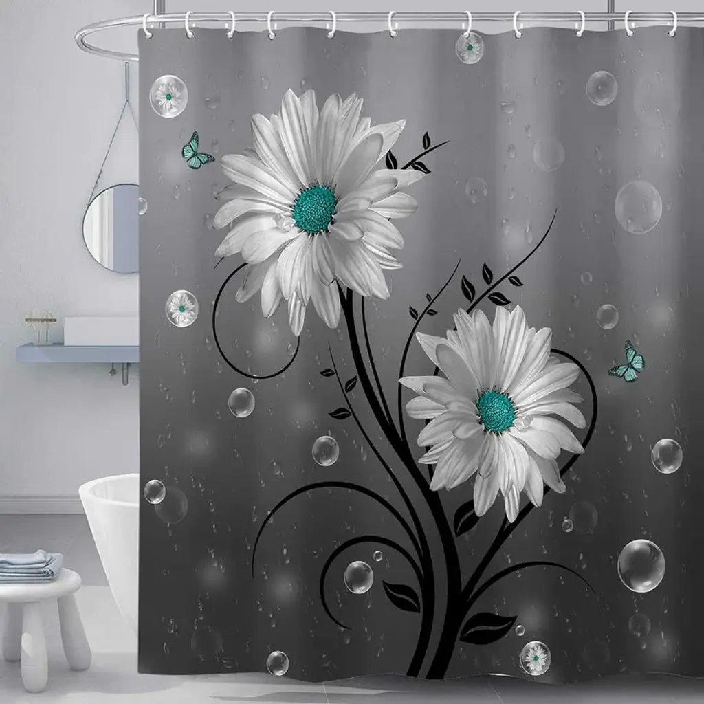 SHOWER CURTAIN MATERIAL: Bathroom curtain made of high quality polyester waterproof fabric, unlinedCURTAIN SIZE: Suitable for most bathrooms and bathtubs. Shower curtains are available in more sizes, please feel free to email me.UNIQUE DESIGN: Digital printing, vibrant colors and clear images, bring you ultimate visual enjoyment and bathing experience.USE: This bathroom set can be used in master bathrooms, guest bathrooms, children's bathrooms, apartments, hotels, campers, dormitories, school showers, clubs, gyms and anywhere you need it.CARE INSTRUCTIONS: Machine washable in cold water, wrinkle and fade resistant. It matches perfectly with towels, rugs, bath mats and other bathroom accessories in a variety of colors.