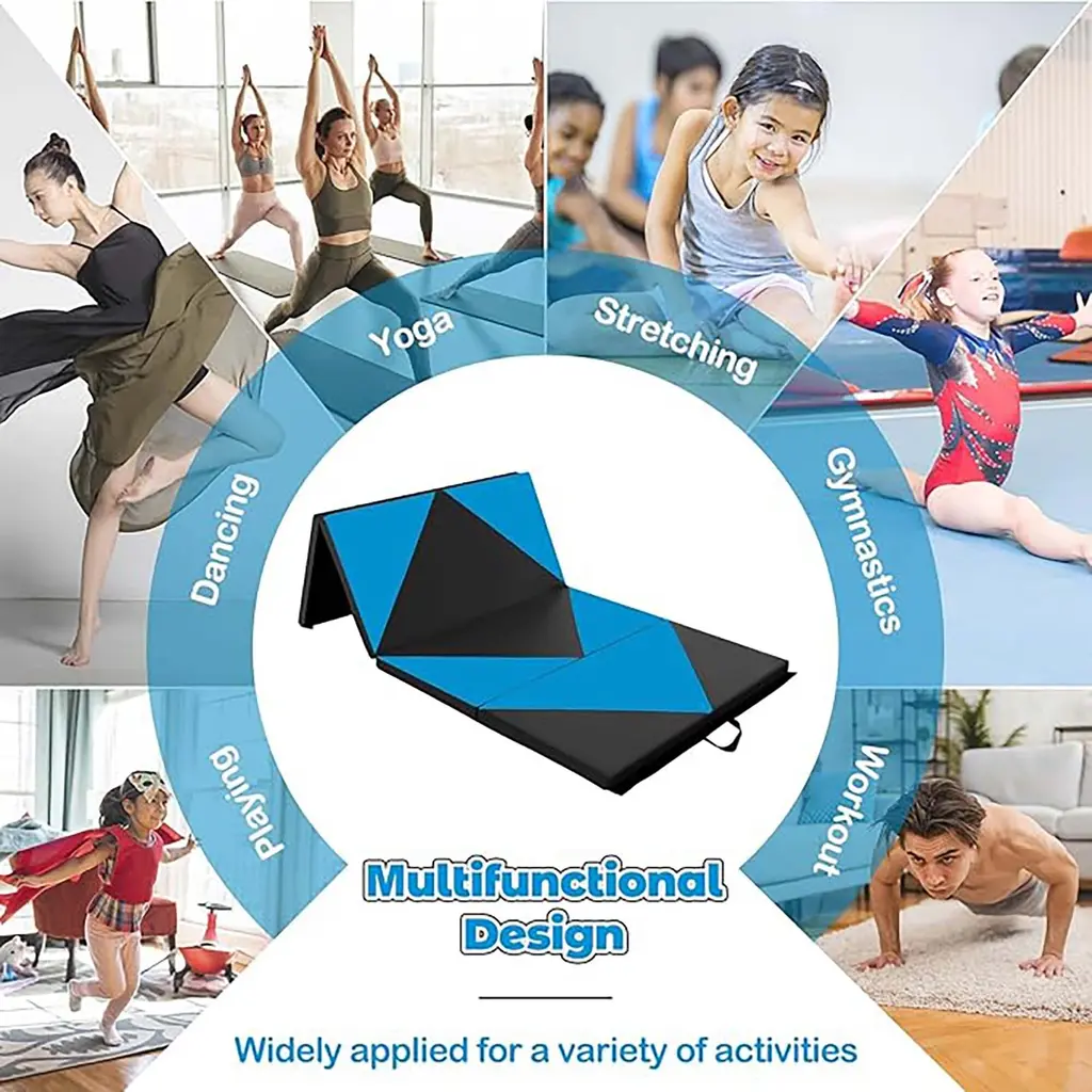 Folding Gymnastics Mat Tumbling Mat W/ Hook & Loop Fasteners - Blue&black