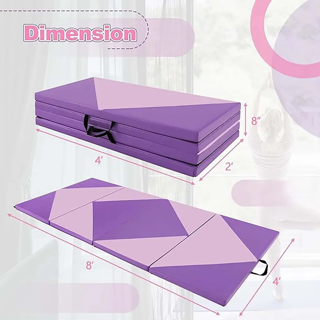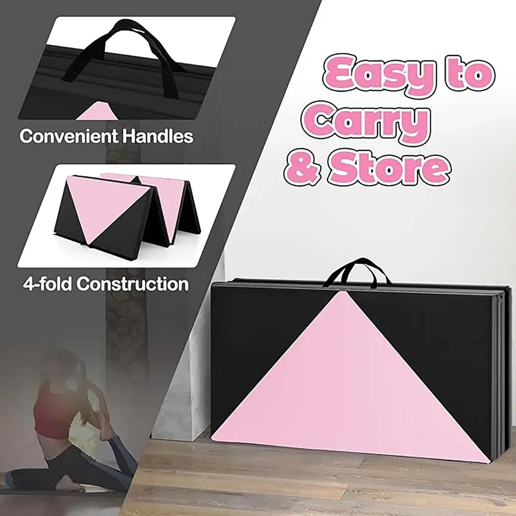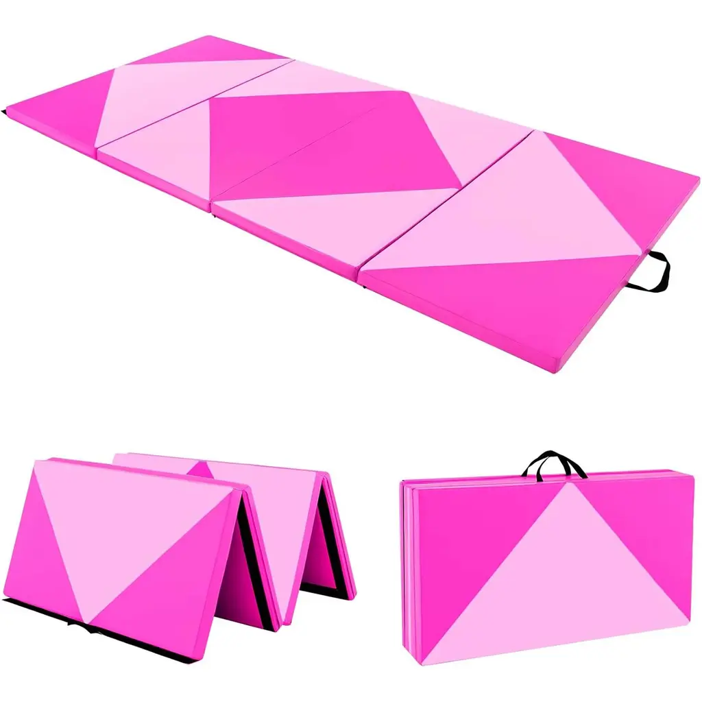 Folding Gymnastics Mat Tumbling Mat W/ Hook & Loop Fasteners - Pink&rose