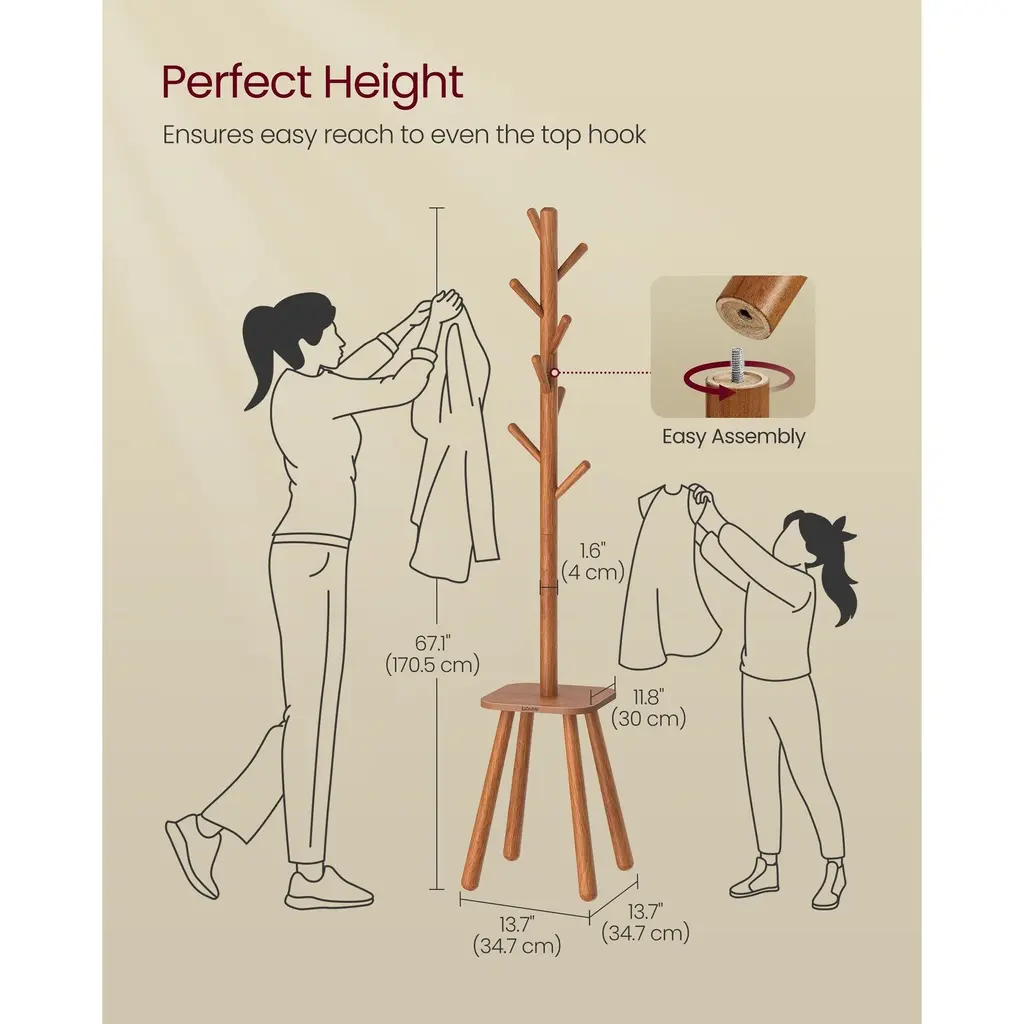 Free Standing Coat Stand With 8 Hooks And Storage Shelf - 13.7"l X 13.7"w X 67.1"h - Caramel-Brown