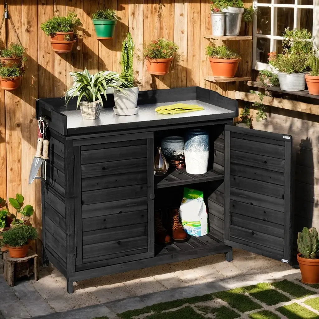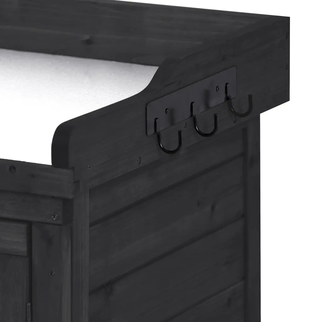 Garden Potting Bench Table With Tabletop, Outdoor Garden Patio Wood Storage Cabinet With 2-Tier Shelves And Side Hook - Black