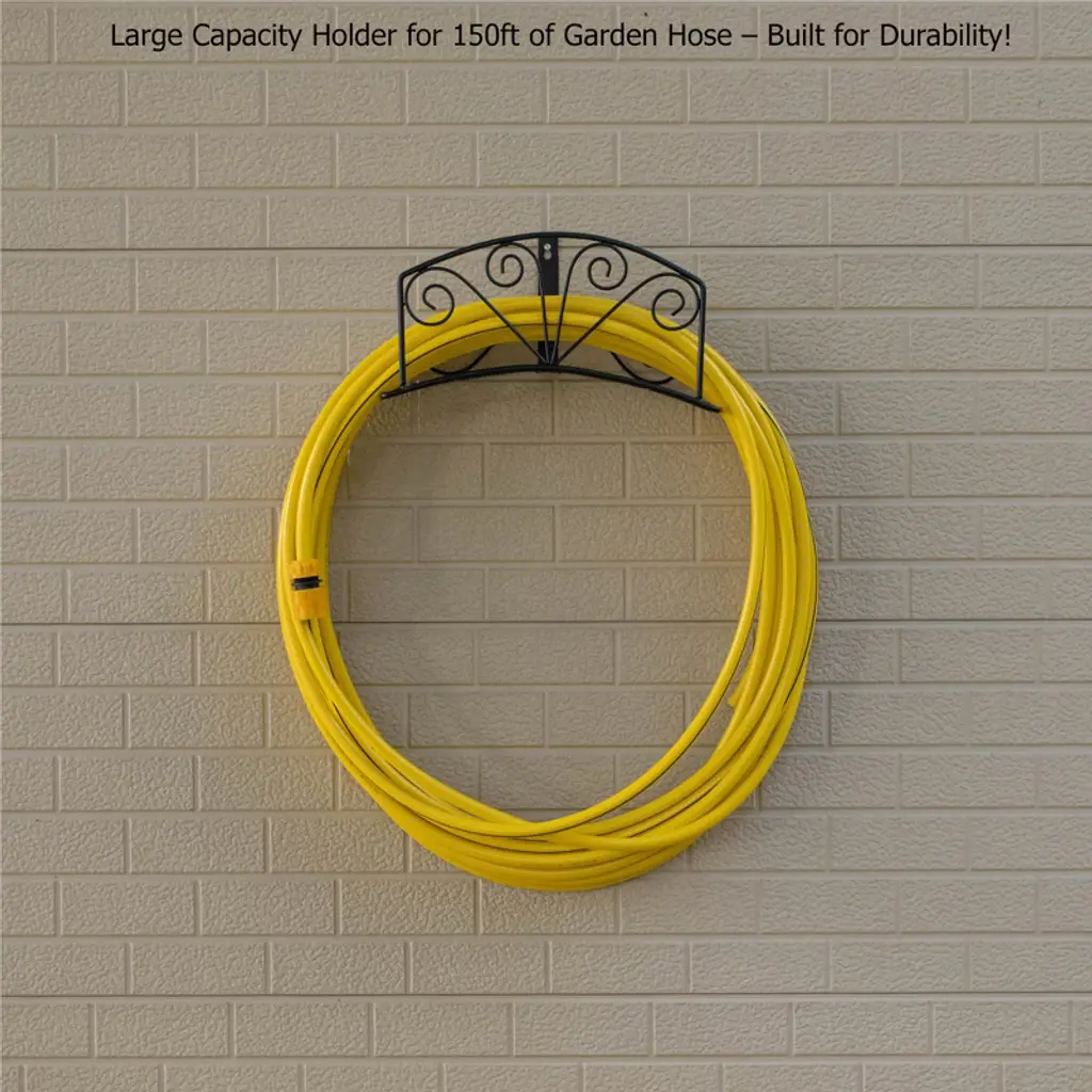 Gardenised Metal Wall-mount Elegant Scrollwork Hose Holder Heavy-duty Outdoor Hanger And Water Hose Organizer With Sturdy Reel Hooks & Screw