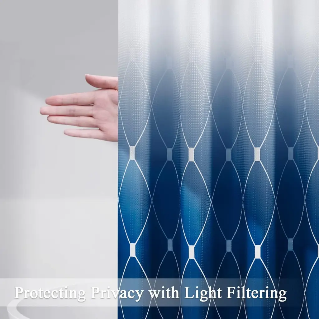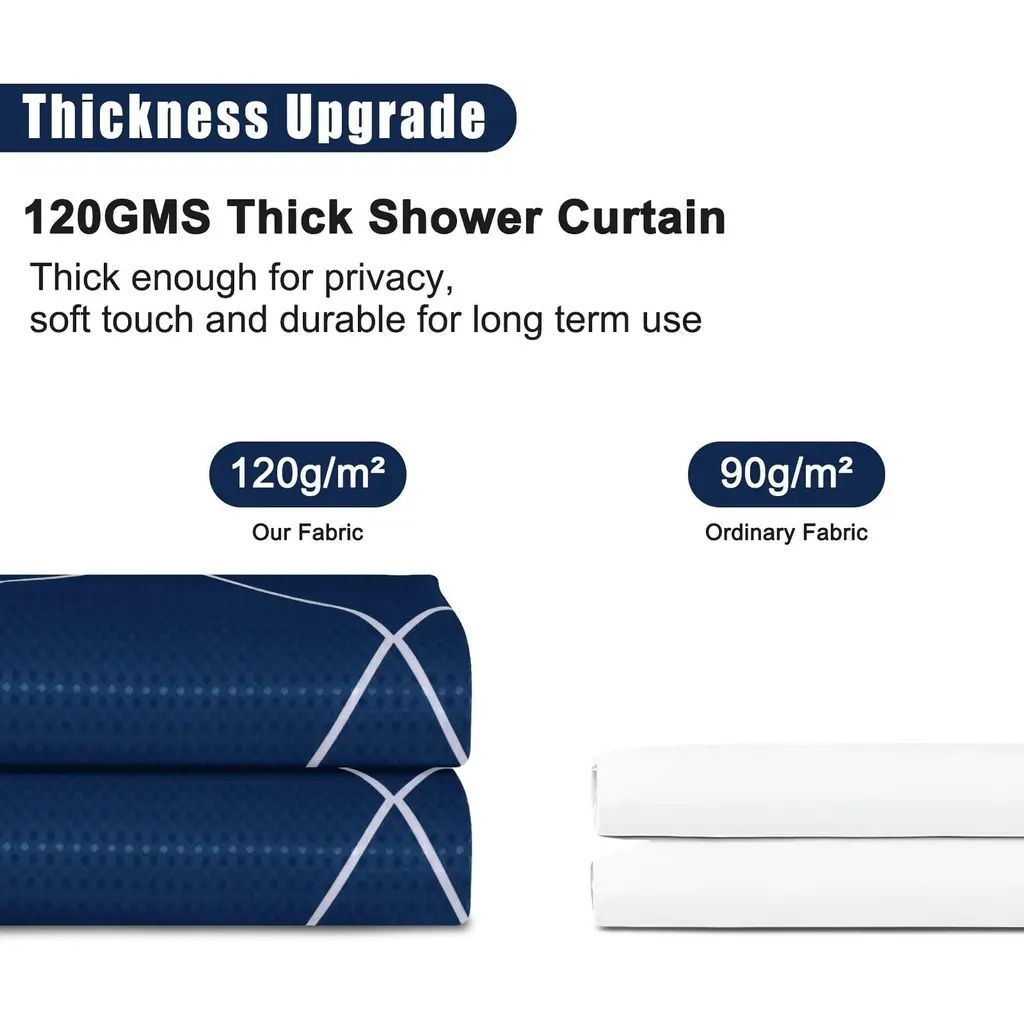 Geometric Navy Blue Shower Curtains For Bathroom With Hooks, 72 X 78 - Multicolor