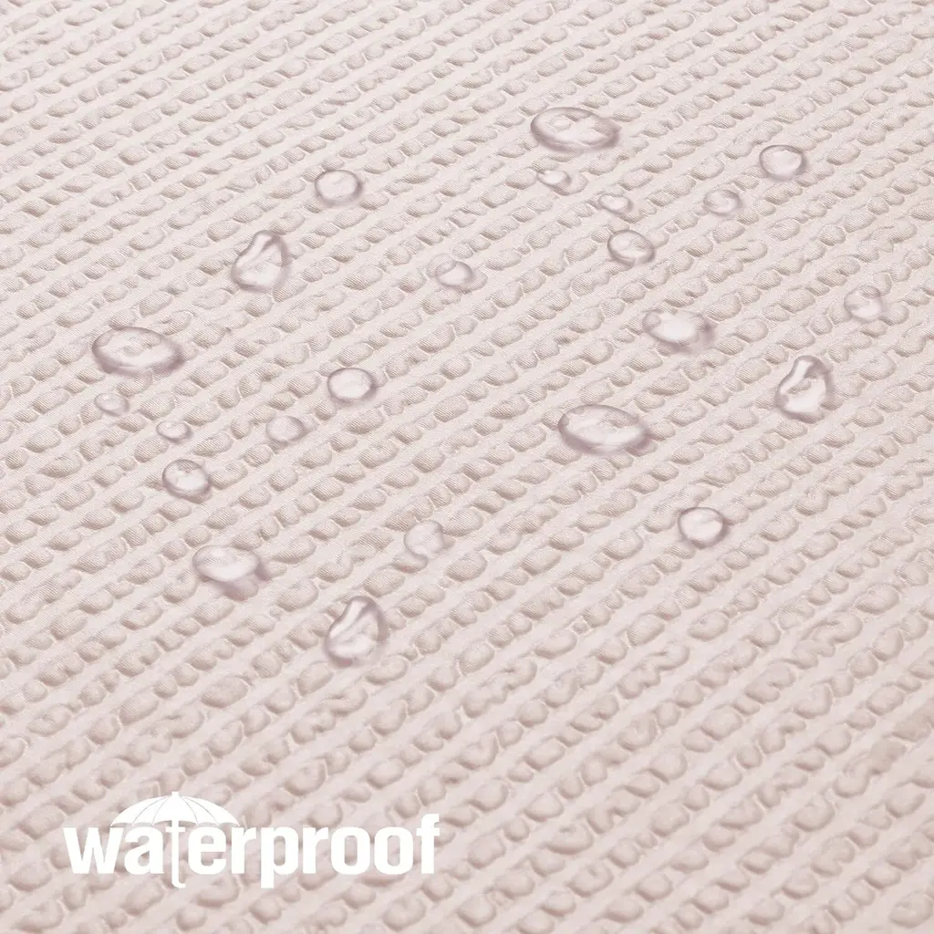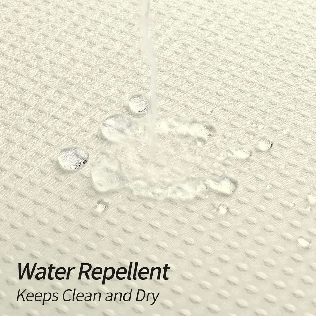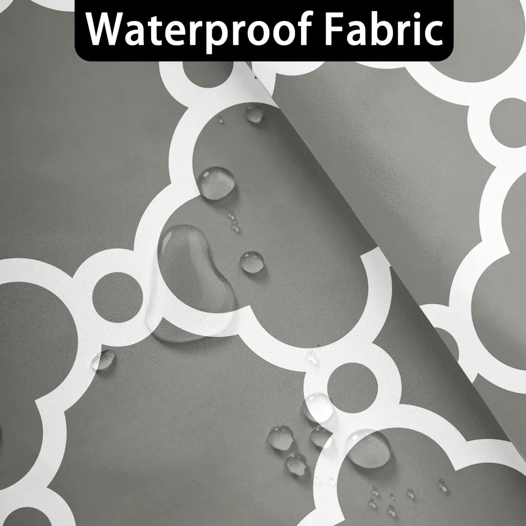 Premium Fabric: Made of tightly woven fabric and superior quality polyester, our emerald green shower curtain features a delicate waffle weave texture and a premium ombre geometric pattern that adds a vibrant and refreshing test of brightness to your bathroom. Water Repellent: This shower curtain with hooks is designed with a special water repellent that effectively repels water and promotes the formation of water droplets that quickly roll off the surface, effectively keeping your bathroom dry and clean. Privacy Protection: The thick fabric shower curtain effectively blocks the view and protects your privacy for a soothing, comfortable and relaxing bathing experience. The waffle textured fabric will not block light from entering, darkening the bathroom and creating an oppressive feeling. Modern and Luxurious Style Bathroom Decor: simple geometric design without being too high class and luxurious for anyone who wants to add some fun and whimsy to their shower - at home, in apartments, hotels, dorm rooms, bathrooms and anywhere else you need a reliable shower curtain or liner. Packaging and Care Instructions: Includes 1 shower curtain with reinforced meta eyelets. 12 rustproof hooks with silver ball beads for easy sliding on the shower curtain rod.