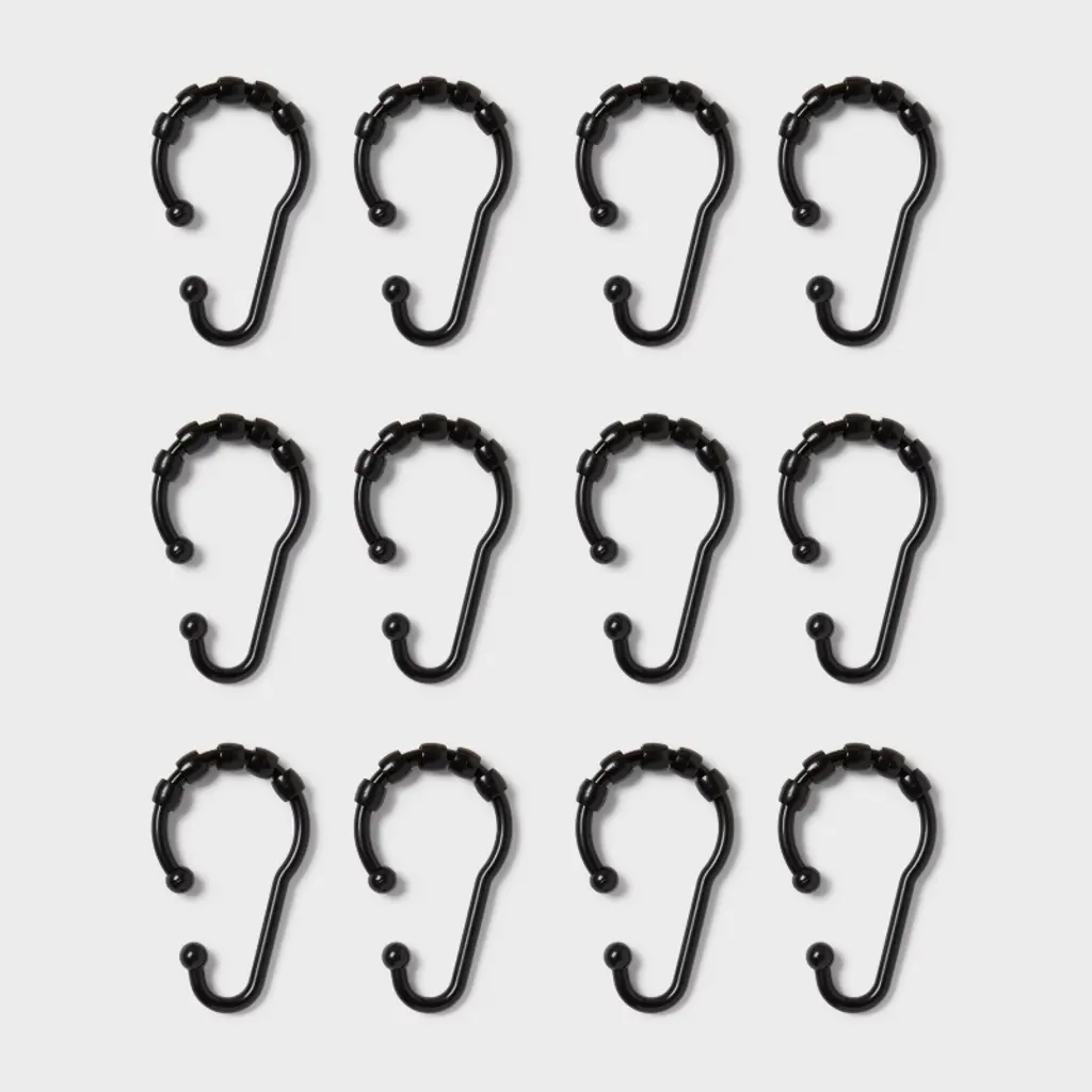 Glide Hook Shower Curtain Rings Black - Room Essentials™