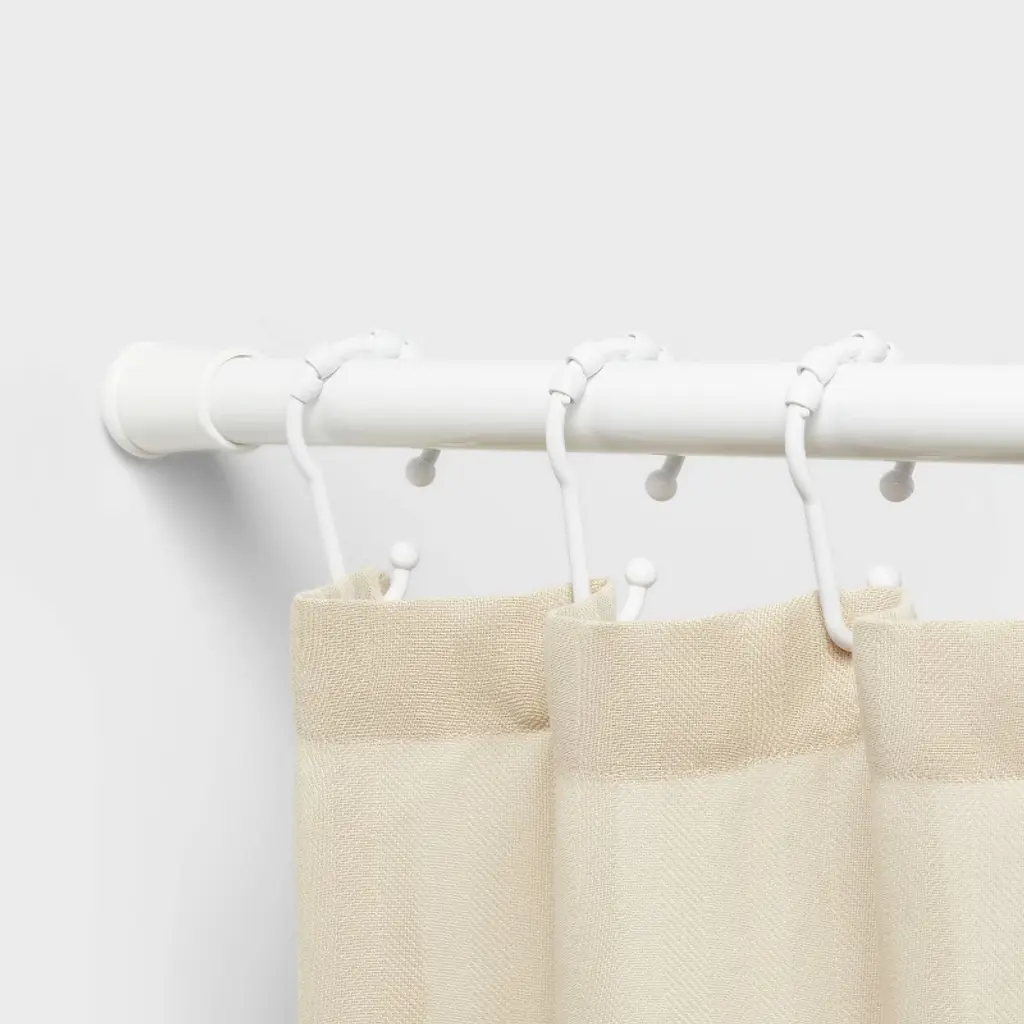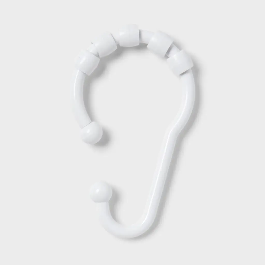 Refresh the look and feel of your bathroom with these Glide Hook Shower Curtain Rings from Room Essentials™. These shower curtain rings feature an open-hook design that allows easy installation on a standard rod and curtains without any additional hardware. Featuring beads at the top end, these curtain rings provide effortless movement, preventing snagging or clanging. Plus, the white hue makes them compatible with a variety of decor styles.Room Essentials™: Everyday Value