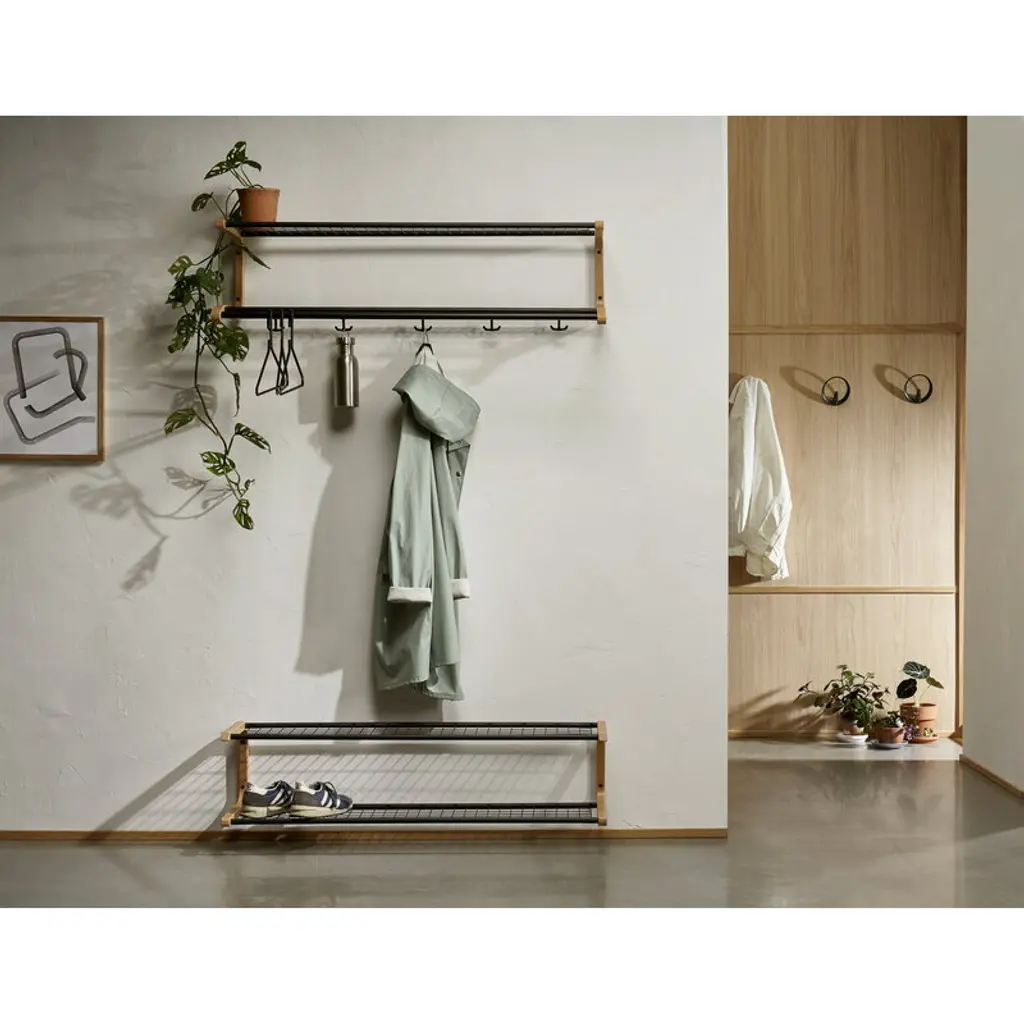 Essem Design's Gloria hook introduces a clever solution to home storage problems. The beautifully designed wall hook delights with its versatility: you can casually throw a coat on the knob of the wall hook or thread a dog's leash or a hand towel through the loop! An umbrella or a clothes hanger also swings securely and stylishly on the looped hook. Dot your décor with individual Gloria wall hooks or assemble a fun and functional ensemble with hooks of different colors.