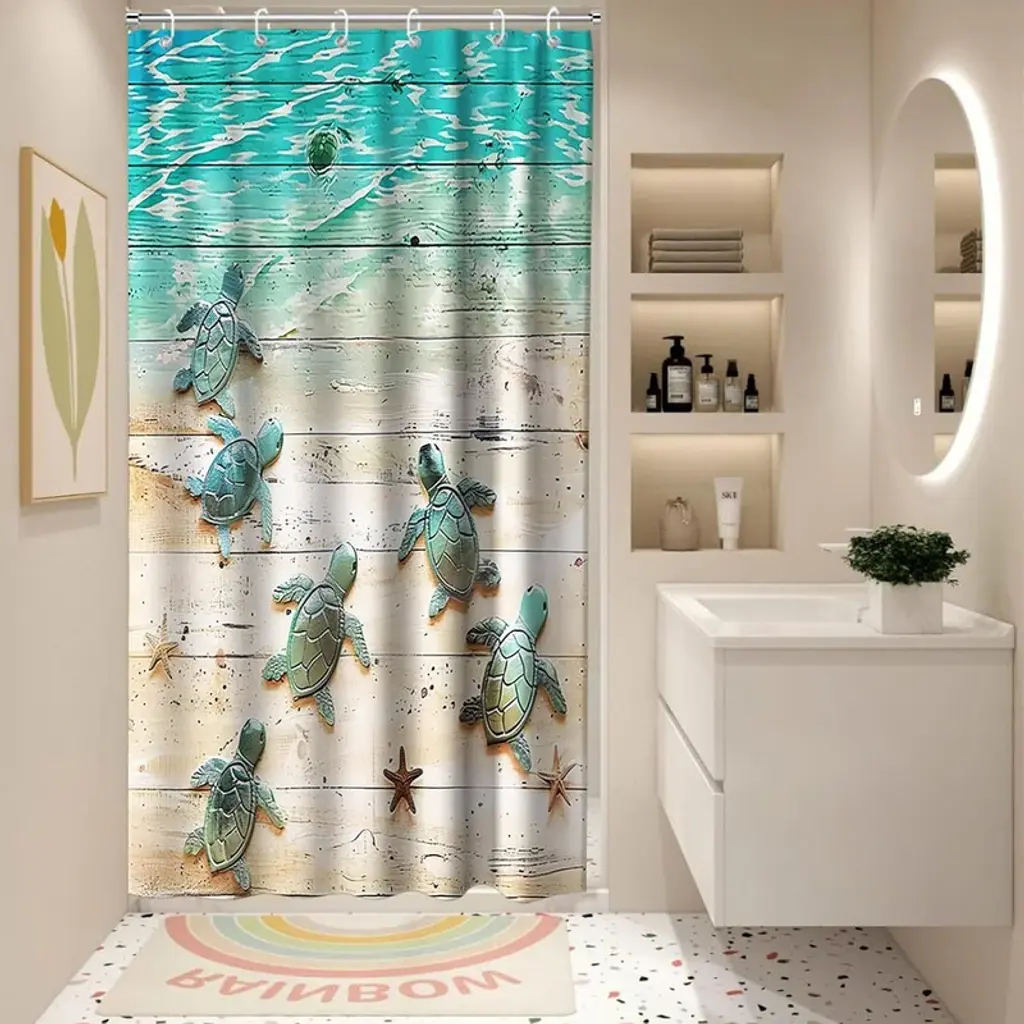 Green Beach Turtle Shower Curtain Nautical Theme Fabric Bathroom Blue Ocean Decor With Grommets And Hooks Blue - Size: 60"w X 74"l (Pack Of 1)
