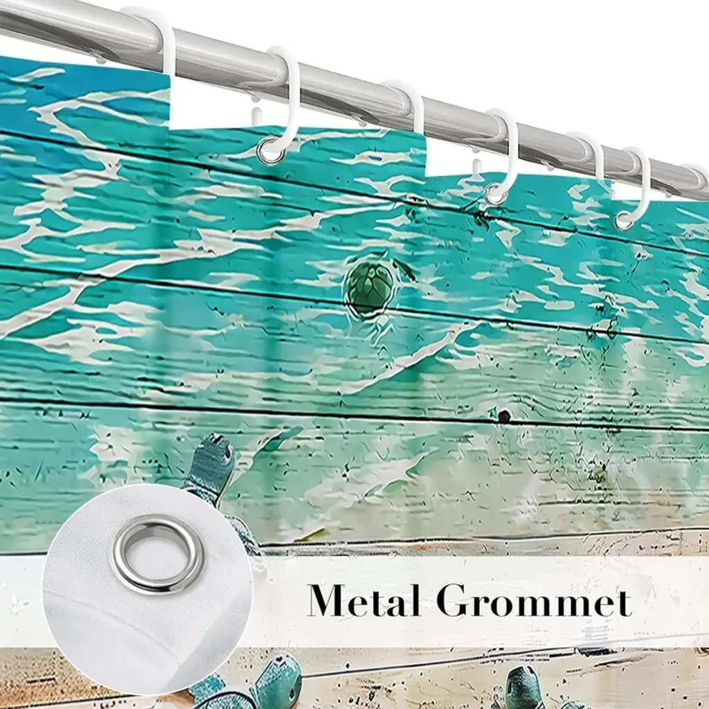 Green Beach Turtle Shower Curtain Nautical Theme Fabric Bathroom Blue Ocean Decor With Grommets And Hooks Blue - Size: 72"w X 72"l (Pack Of 1)