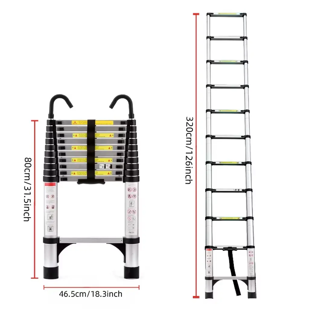 Gulches 10.5ft (About 3.2m) Retractable Ladder, Foldable Ladder With Hook, Aluminum Retractable Ladder, Suitable For Daily Use Of Rv, Attic, Home