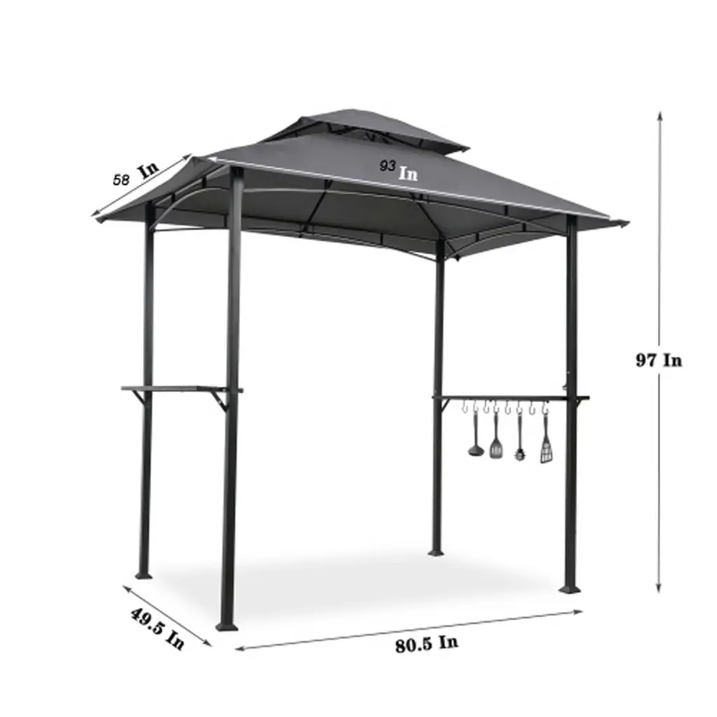 Gulches Outdoor Grill Gazebo 8'x5', Double Tier Soft Top Canopy With Steel Frame, Hook & Bar Counters, Shelter Tent For Backyard Cooking, Khaki