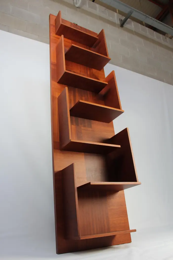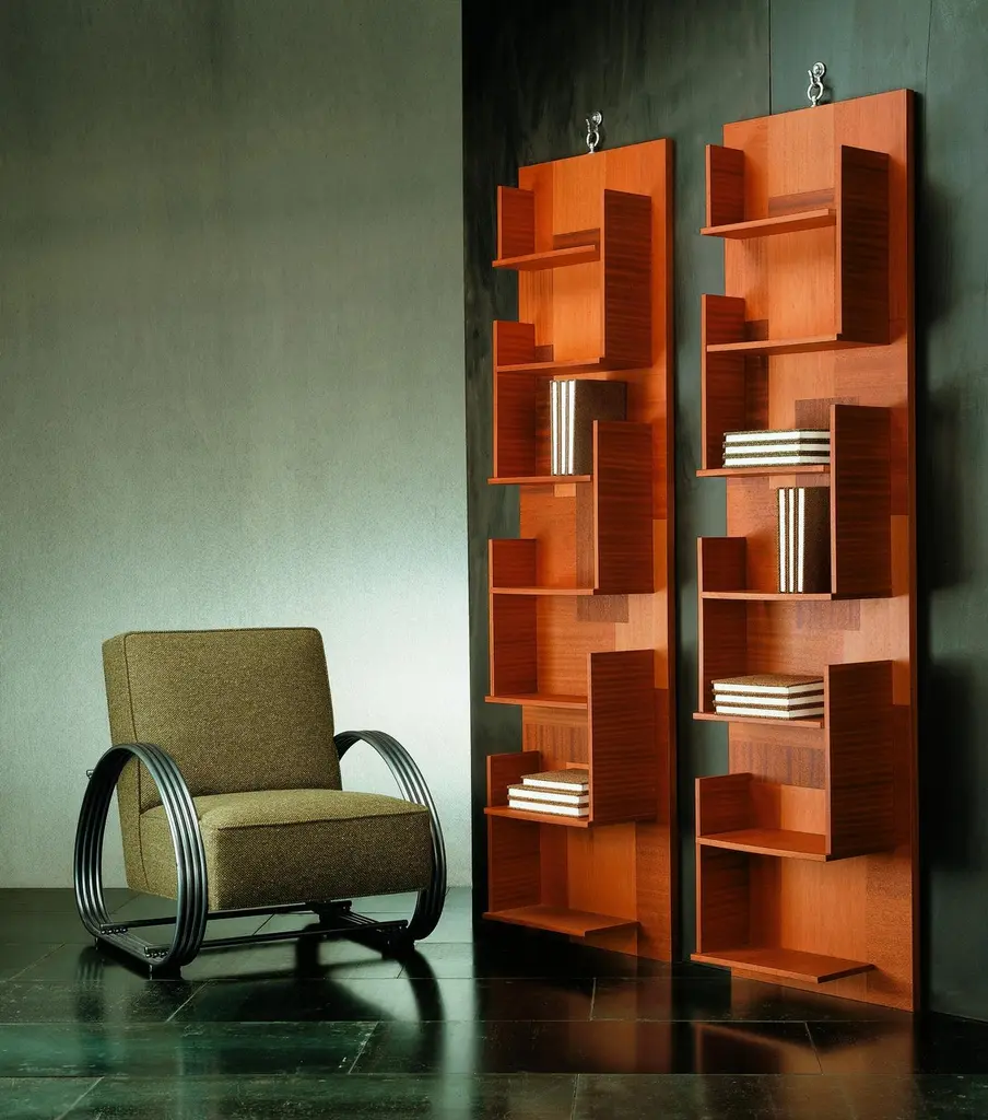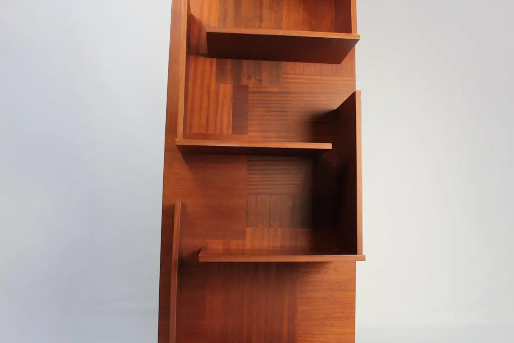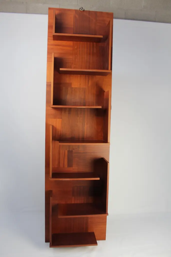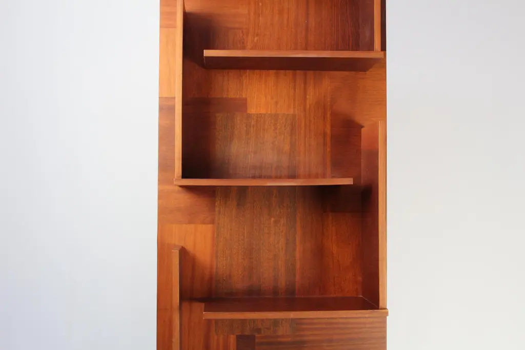 This wall-mounted bookcase seamlessly blends functionality with aesthetic appeal. The inlaid back and shelves, meticulously crafted from various mahogany species, create a tapestry of rich tones and textures, turning each shelf into a work of art.Adding a touch of modern sophistication, the metal hook in a sleek silver color not only serves as a practical accessory for hanging items but also acts as a contemporary accent, contrasting beautifully with the warm hues of the mahogany. The natural mahogany finish enhances the wood's natural grain and radiates a timeless charm, ensuring that Harlem becomes a focal point in any room.As both a practical storage solution and a statement piece, Harlem transcends the ordinary, inviting you to explore its shelves like chapters in a captivating story. Whether displaying your cherished book collection or showcasing curated decor, Harlem is more than just a bookcase—it's a functional masterpiece that elevates the ambiance of any space.