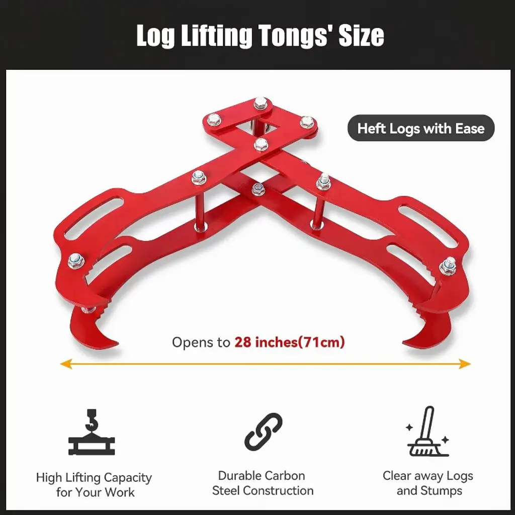 Take the strain out of tough log handling with these heavy-duty log tongs, designed to make moving, lifting, and organizing timber far more efficient and safe. Crafted from premium solid steel and finished with a durable powder coating, these tongs combine strength with longevity, resisting rust and wear no matter the weather. The sharply serrated claws provide powerful grip, so even the heaviest or most unwieldy logs are held firmly without slipping or bending the tongs, while the vivid red finish ensures you can easily find them in your workshop or out in the woods. The wide jaw opens up to 32 inches and features angled claw points, allowing you to handle logs of various sizes with confidence, accommodating everything from small firewood to massive timber—up to 3000 pounds with ease. The 360-degree rotating design adds flexibility and safety, preventing accidental slippage, and is compatible with tractors, ATVs, and skidders for smooth lifting, dragging, or stacking.