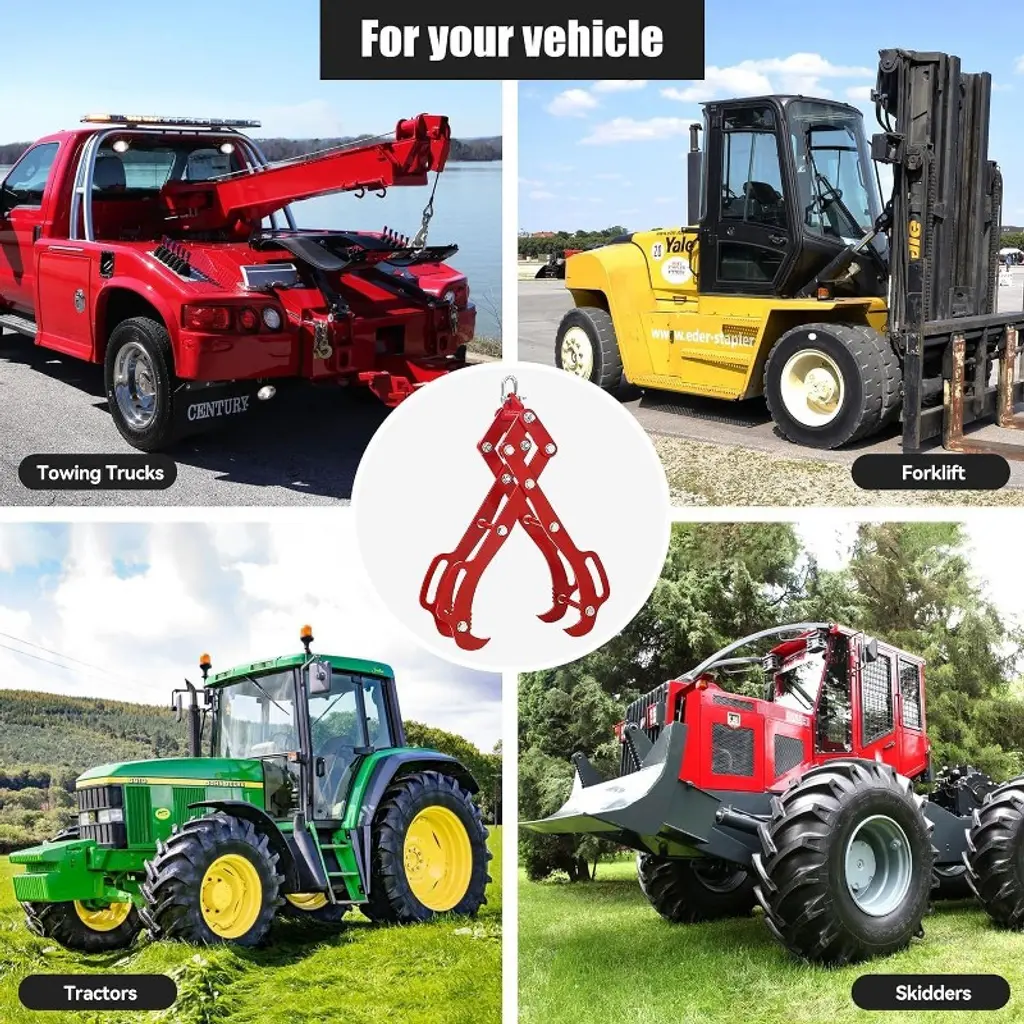 Heavy Duty 28 Inch Log Lifting Tongs, Red Timber Grapple Claw Hook, 4-claw Logging Grabber, Lumber Skidding Tool For Lifting And Moving Logs