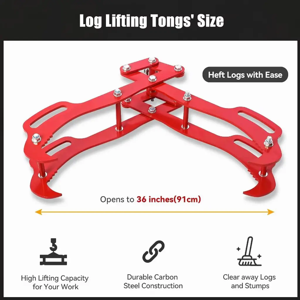 Take the strain out of tough log handling with these heavy-duty log tongs, designed to make moving, lifting, and organizing timber far more efficient and safe. Crafted from premium solid steel and finished with a durable powder coating, these tongs combine strength with longevity, resisting rust and wear no matter the weather. The sharply serrated claws provide powerful grip, so even the heaviest or most unwieldy logs are held firmly without slipping or bending the tongs, while the vivid red finish ensures you can easily find them in your workshop or out in the woods. The wide jaw opens up to 32 inches and features angled claw points, allowing you to handle logs of various sizes with confidence, accommodating everything from small firewood to massive timber—up to 3000 pounds with ease. The 360-degree rotating design adds flexibility and safety, preventing accidental slippage, and is compatible with tractors, ATVs, and skidders for smooth lifting, dragging, or stacking.