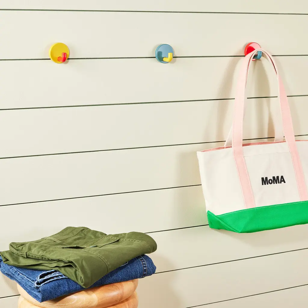 Founded in Germany in 1929, Hewi produces bathroom and home accessories with a Bauhaus design sensibility. These Wall Hooks are made from closed-cell polyamide, which provides a naturally hygienic surface, as well as a pop of color. Hewi Wall Hooks are a sanitary solution for hanging towels in your bathroom, tea towels in your kitchen or clothing and accessories anywhere in your home. They easily attach to your wall with the included screws and hardware. Hewi Bauhaus Wall Hooks are made in Germany and each measures 1.8h x 2.25w x 1.75"d. Set of three. Max. weight capacity: 25 lbs. Examples of Bauhaus design are represented in MoMA’s collection.