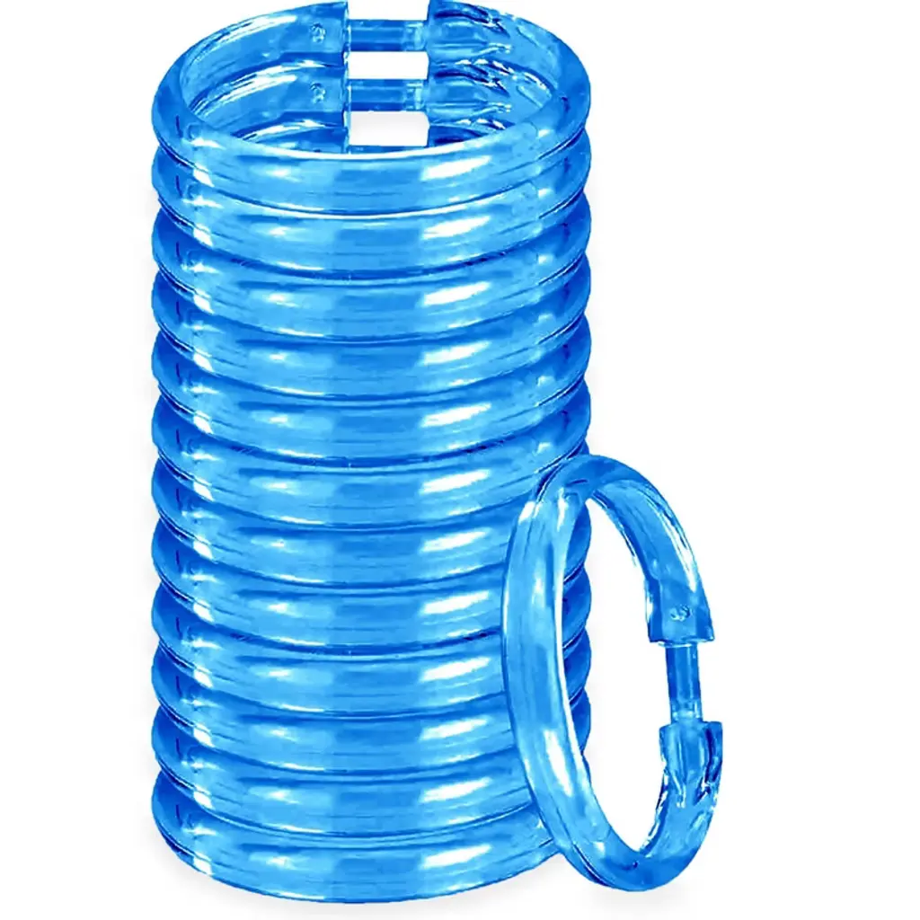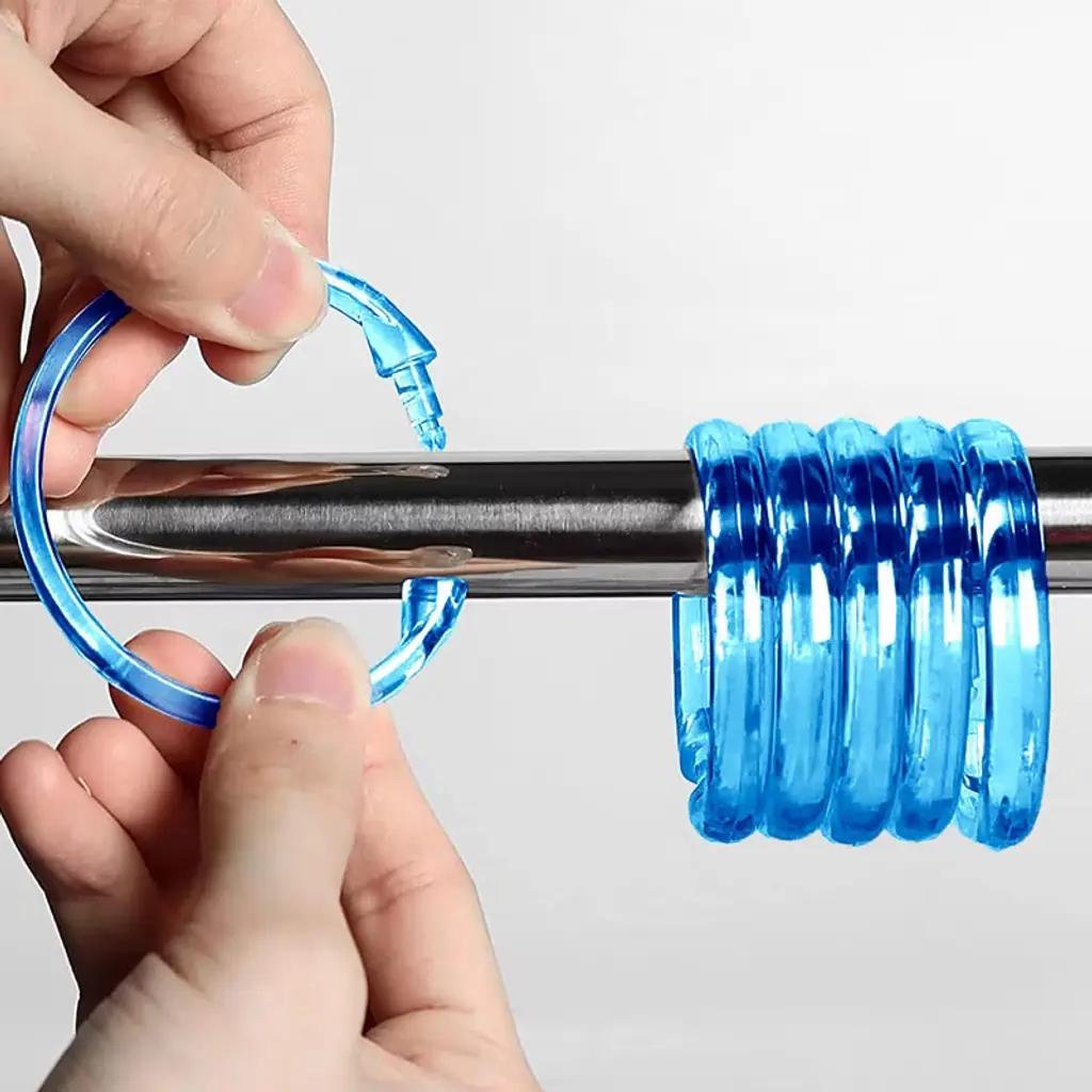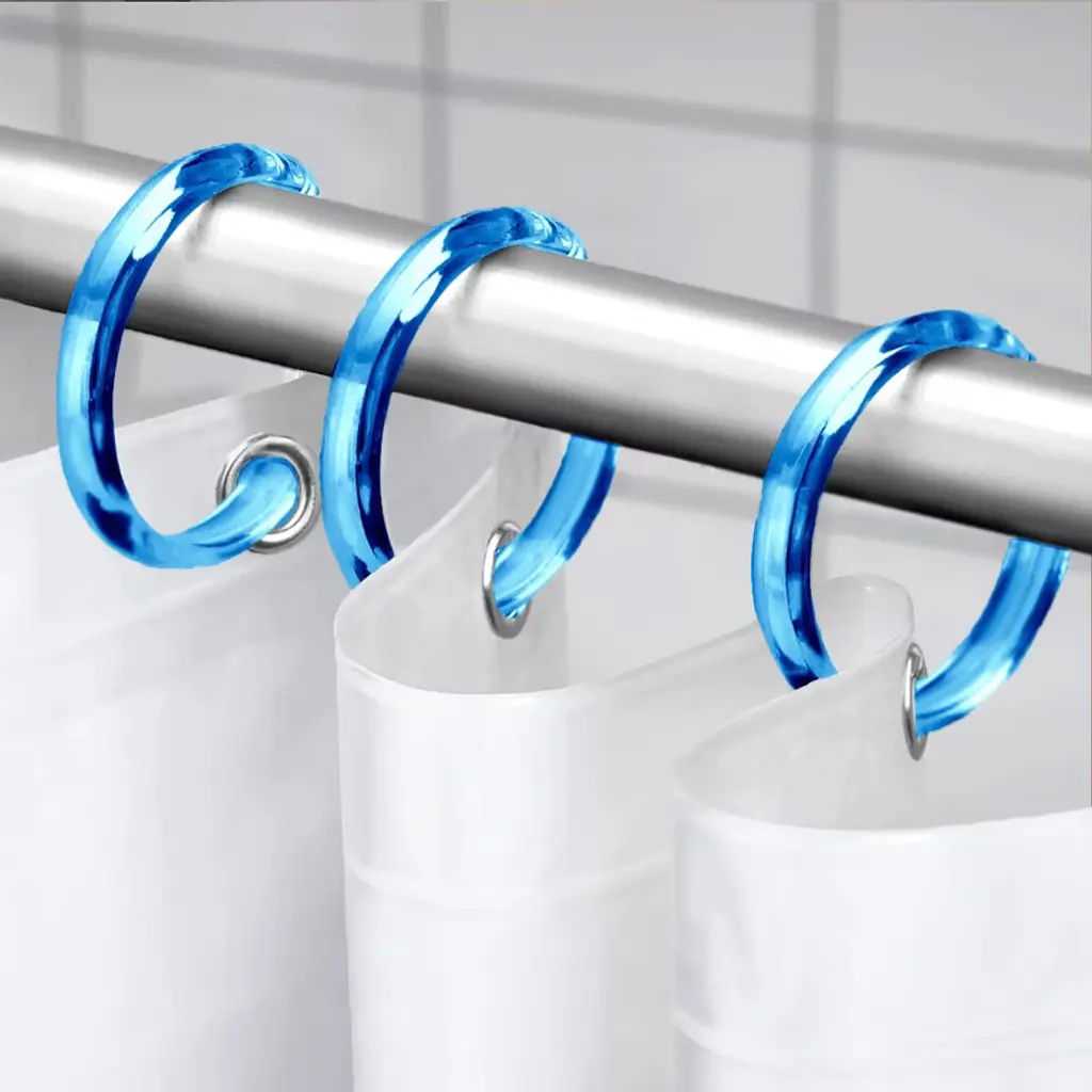 These shower curtain rings are rust proof, they are made of high-quality material, lightweight yet sturdy. These decorative shower curtain hooks are strong enough to hold a heavy shower curtain. The smooth surface of these shower curtain hooks ensure they glide easily on the shower rod. The simple design of these shower curtain rings prevents them from getting stuck together as they slide. This set includes 12 Premium Shower Curtain Rings. Each shower curtain rings measures 2.3" inches. MATERIALS: These shower curtain rings are made of plastic so that you never have to worry about rust in your shower! Easy to snap closure to keep your shower curtain or liner from falling off.