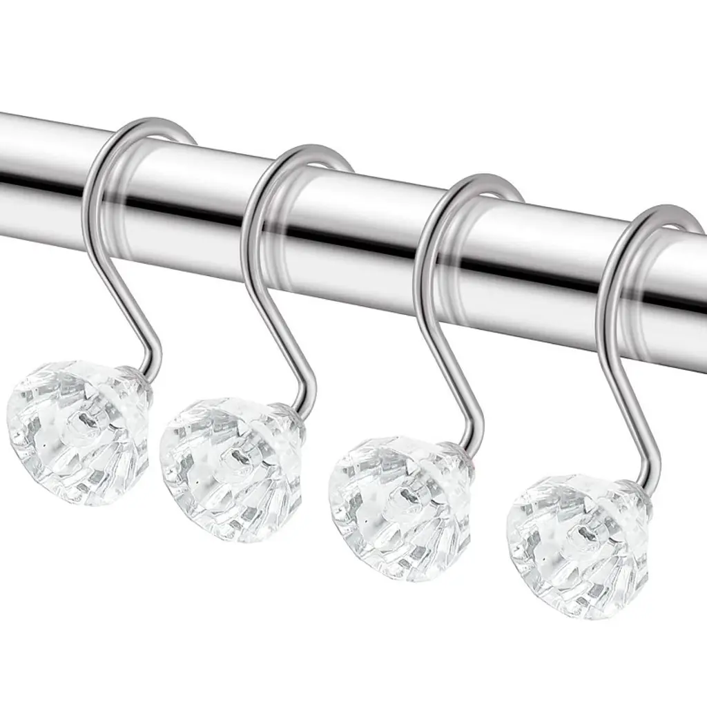 These shower curtain rings are rust proof, they are made of high-quality metal material, lightweight yet sturdy. These decorative shower curtain hooks are strong enough to hold a heavy shower curtain. The smooth surface of these silver shower curtain hooks ensure they glide easily on the shower rod. The simple design of metal shower curtain rings prevents them from getting stuck together as they slide. This set includes 12 Premium Shower Curtain Hooks.MATERIALS: These shower curtain rings are made of rustproof metal so that you never have to worry about rust in your shower! Ball-shaped end adds a decorative touch and helps keep curtain or liner secure on your shower rod.