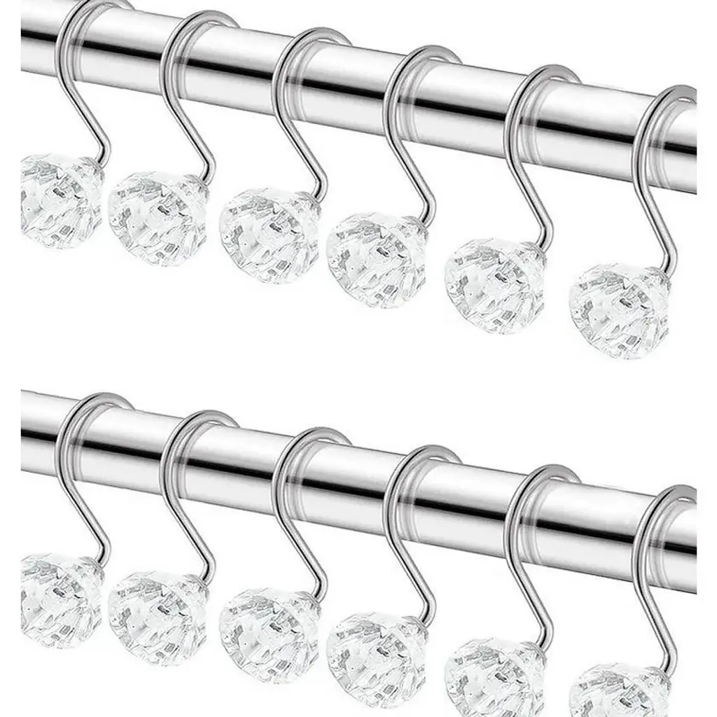 Home Mart Goods 12 Piece Set - Crystal Clear Accent Shower Curtain Hooks Rings Rustproof