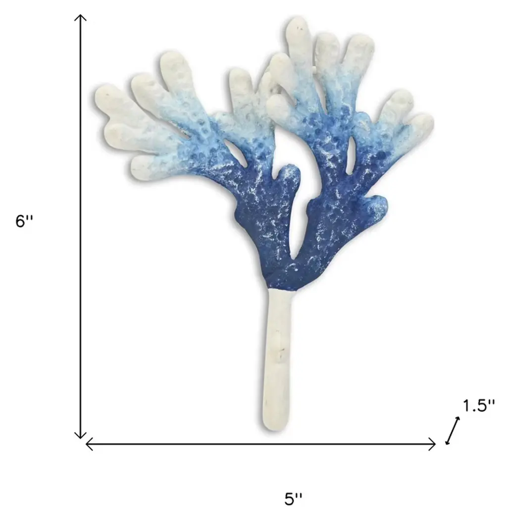 Homeroots 5" Blue And White Cast Iron Coral Wall Hook