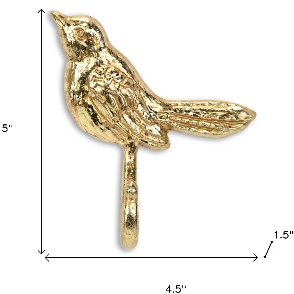 Homeroots 5" Gold Cast Iron Bird Wall Hook