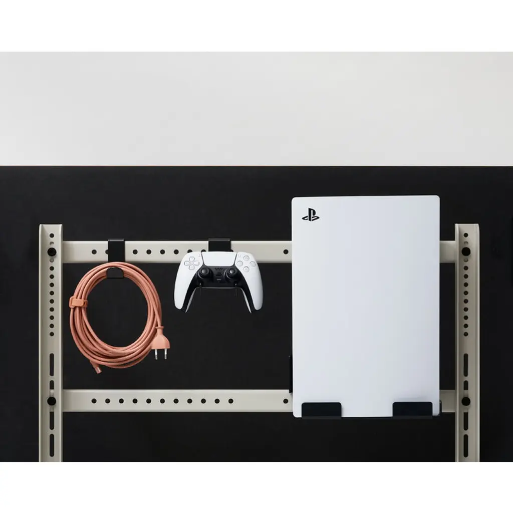 Pedestal's hook mount helps to keep your living room wires and cords organized so that your refreshing entertainment oasis always stays neat and tidy! Made of aluminum, the hook attaches easily back of the TV stand. The hook mount fits all Pedestal's stands, excluding Viva.