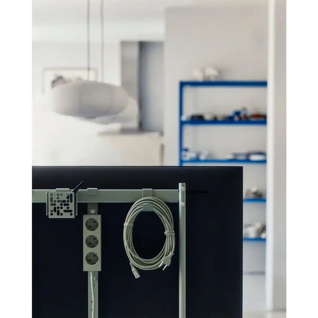 Pedestal's hook mount keeps your living room's cords, wires, and cables neatly organized, ensuring your entertainment space stays tidy and stylish. Made of metal, the hook attaches quickly and easily to the back of your TV stand and is compatible with all Pedestal TV stands, except for the Viva models.