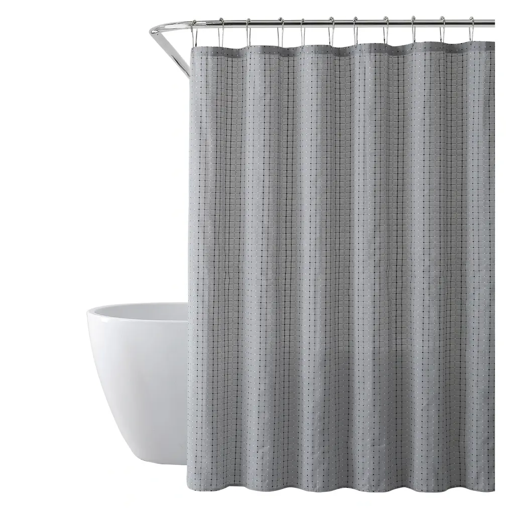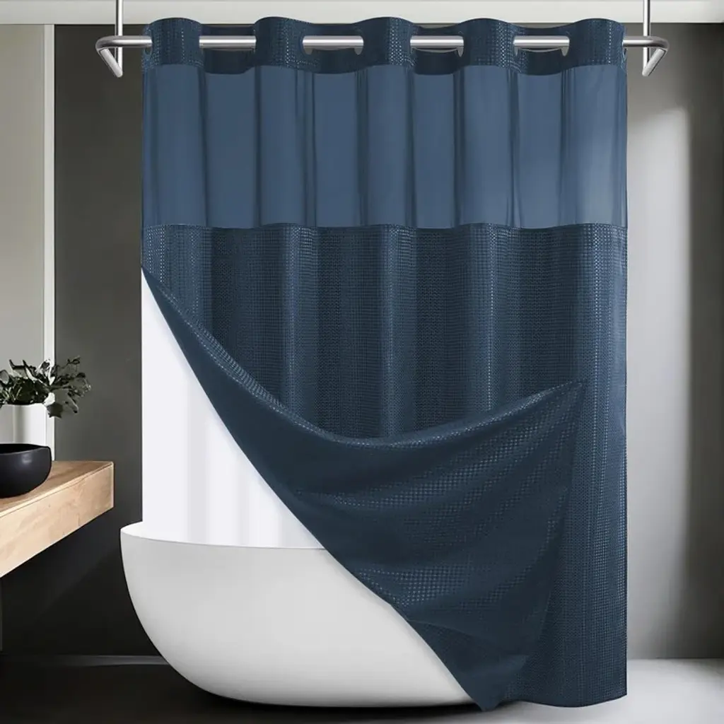Hookless Shower Curtain With Snap-In Liner Set Waffle Shower Curtain For Bathroom Hotel Style Fabric Waterproof Liner - 71" W X 74" H, Grey