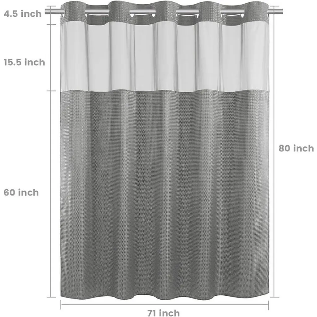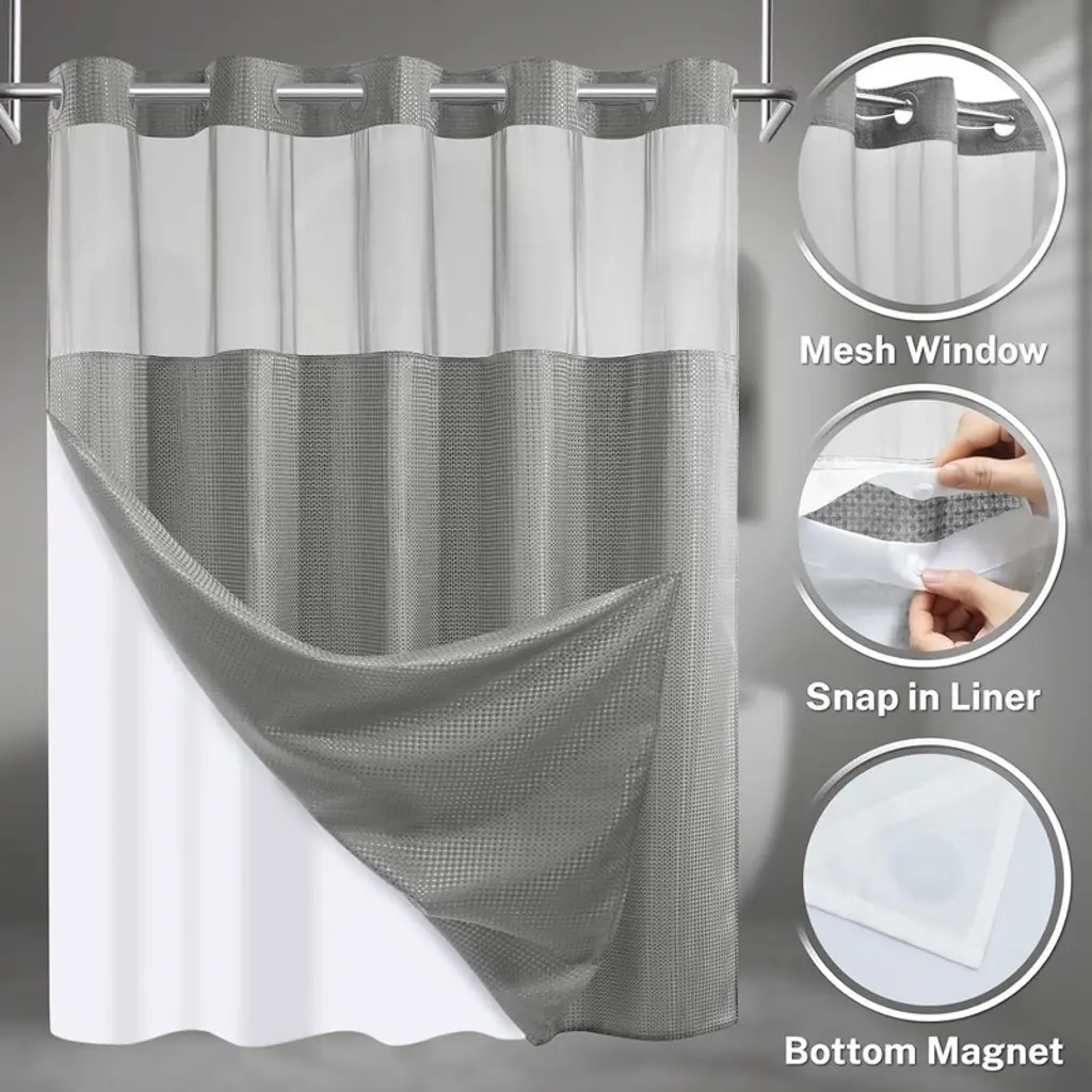 Hookless Shower Curtain With Snap-In Liner Set Waffle Shower Curtain For Bathroom Hotel Style Fabric Waterproof Liner - 71" W X 80" H, Grey