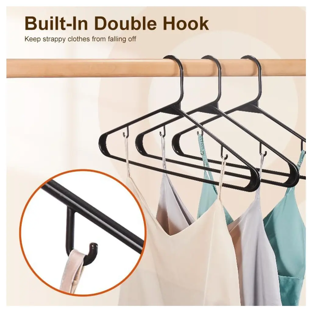 House Day Durable Plastic Hangers Light-weight With Hooks Black 60 Pack