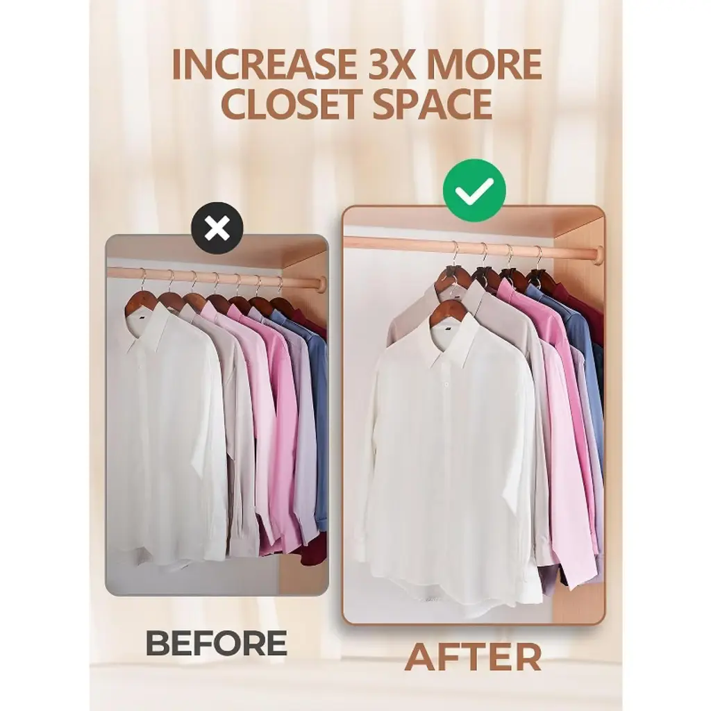 The HOUSE DAY 60 Pack Clothes Hanger Connector Hooks are designed to maximize closet space and keep your wardrobe organized. Measuring 1.6”x1.3”x1.2” (LxWxH), these versatile hooks are compatible with various types of hangers including plastic, velvet, wooden, metal, and sponge hangers, as well as those designed for baby clothes, pants, and skirts. Constructed from high-quality, odorless plastic, they are sturdy enough to hold items up to 9kg/20lb without compromising safety, thanks to their smooth surface and rounded corners. Beyond clothes, these hooks can be used for bags, hats, ties, and other accessories, allowing for easy coordination and organization of your items by season, style, type, or color.