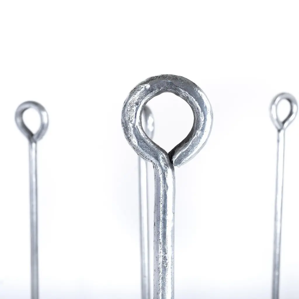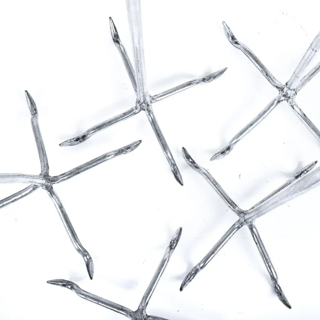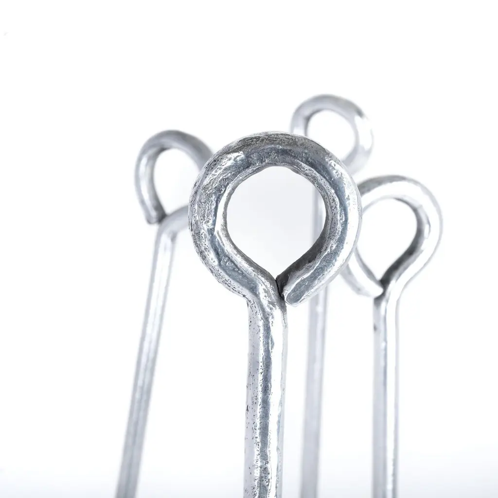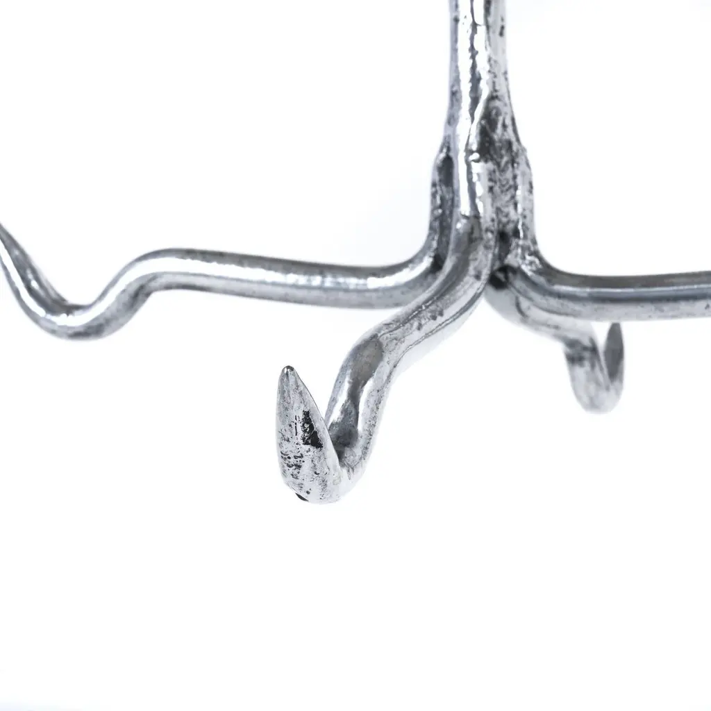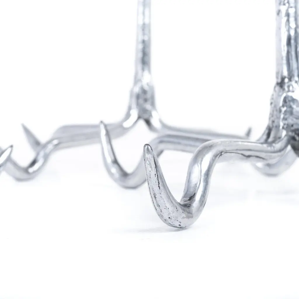 Huge reclaimed Slaughterhouse meat hooks15 Available priced per hook.XXL 4 way vintage meat hooks salvaged from a former slaughterhouse.British circa 1940.Fabulous decorative item which can be used as a feature to hang lighting and decorative objects and also a great window display item.Will fit easily to a rail made from regular 33.7mm galvanised tube and tube clamp fittings.Technical Details.Measures: Height Between 1300mm - 1600mmWidth Between 450mm - 600mmWeight 11 kgColour / Materials Polished SteelOur original vintage items are reclaimed from industrial & public settings and due to the nature of their original life have received wear and tear creating the wonderful individual character of our pieces.We have tried our upmost to offer a true reflection of the product you will receive through our product photography.