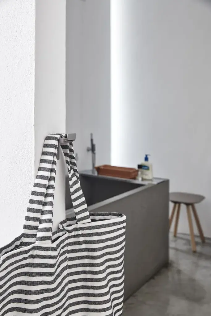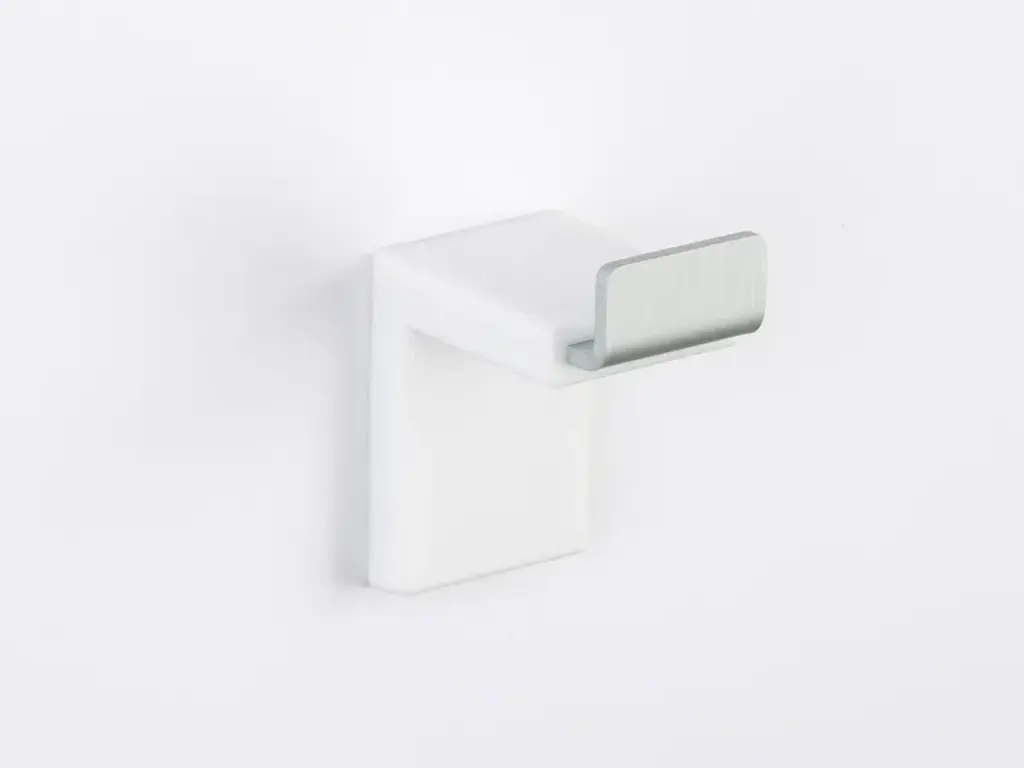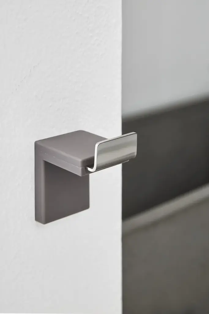 The hook Inlinea is made of anodized aluminium coated of soft and coloured gel polyurethane.geelli proposes exciting functional items that are fun and practical to use. By exploiting the natural adhesive properties of polyurethane gel and its technical and sensorial characteristics, they combine the pleasure of touch, sight and coloured transparency to lend a personal touch to any room. INLINEA - Toilet brush holder, shelf, hand towel holder and hanger in an elegant combinationMaterial: polyurethane gel and anodized aluminum/stainless steel (in the photo it's stainless steel)
