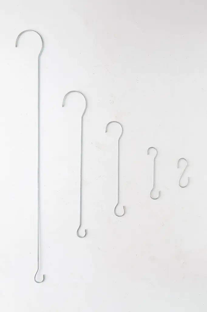 These solid iron hooks make it easy to display hanging baskets, birdhouses, and outdoor decorations. The larger hooks feature a wide opening that fits over tree branches and beams, while the smaller styles make it easy to create descending chains of hanging planters.