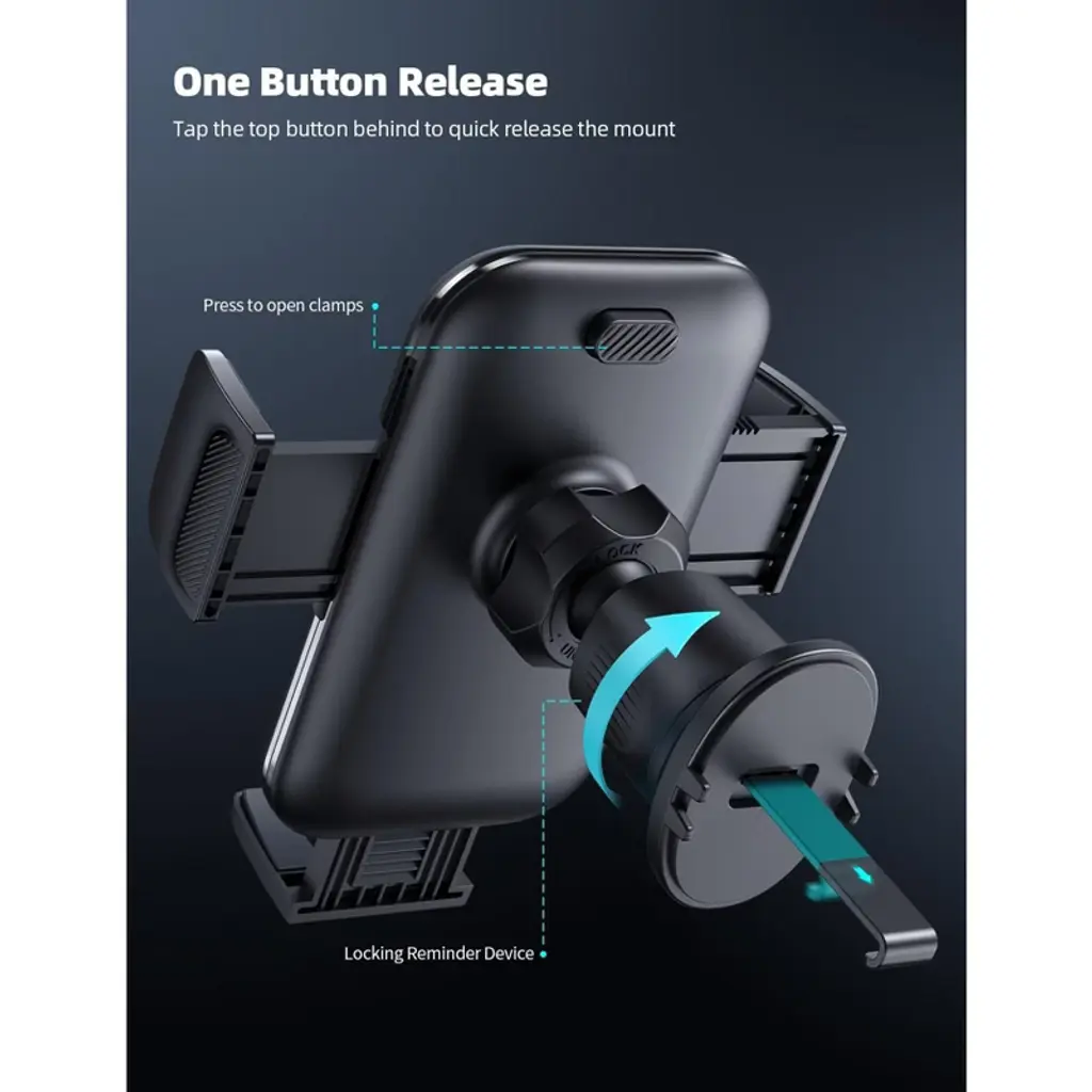 Discover a revolutionary car phone holder! With its 4 - lock protection, it offers enhanced stability on any road conditions, whether it's a sharp turn or a bumpy ride. The hook has an extension range of 10 mm - 29 mm, and works well with non - round air vents where the blade thickness is less than 4.2 mm. It's thick case friendly, thanks to its upgraded arms and adjustable foot, and the ultra - thick silicone back layer keeps your device scratch - free. The holder panel is crafted from anti - wear soft silicone, and the PC + ABS material ensures heat resistance from - 4°F to 194°F. A 360 - degree rotation design allows you to find the perfect viewing angle for all your in - car needs. Installation is a breeze, taking just seconds with 2 simple steps. It fits smartphones from 4.7” to 6.8”, making it compatible with a wide range of models. Whether you're using it for navigation, taking calls, or changing playlists, this car phone holder is your ideal choice for a hands - free and convenient driving experience.