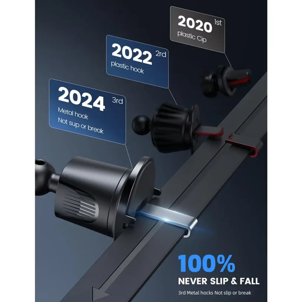 Itopfox Car Phone Holder With Wider Clamp & Metal Hook, Vent Mount For Thick Cases, Compatible With Iphone 17 16 15 14 13 Pro Max & More Smartphones
