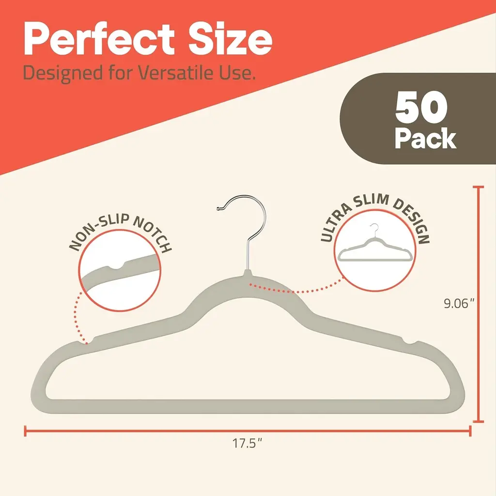Discover the ultimate solution to your closet organization with our hangers Engineered with a robust recycled ABS construction, a smooth ivory velvet finish, and a sturdy metal hook, these hangers are designed to handle up to 10 lbs effortlessly—perfect for both everyday wear and heavy-duty garments. The non-slip velvet surface ensures your clothes remain securely in place, preserving their shape and eliminating unwanted creases. With a 360° swivel hook for effortless access and adjustment, you'll enjoy quick and easy organization every morning. Our ultra-thin, space-saving hangers maximize your closet capacity, making it easier than ever to achieve a neat and organized wardrobe. The sleek, modern design not only elevates the aesthetic of your space but also contributes to an efficient, frustration-free hanging experience. Whether you’re refreshing your closet at home or outfitting a dorm room, these versatile velvet hangers provide the perfect blend of durability, functionality, and style for all your clothing needs.