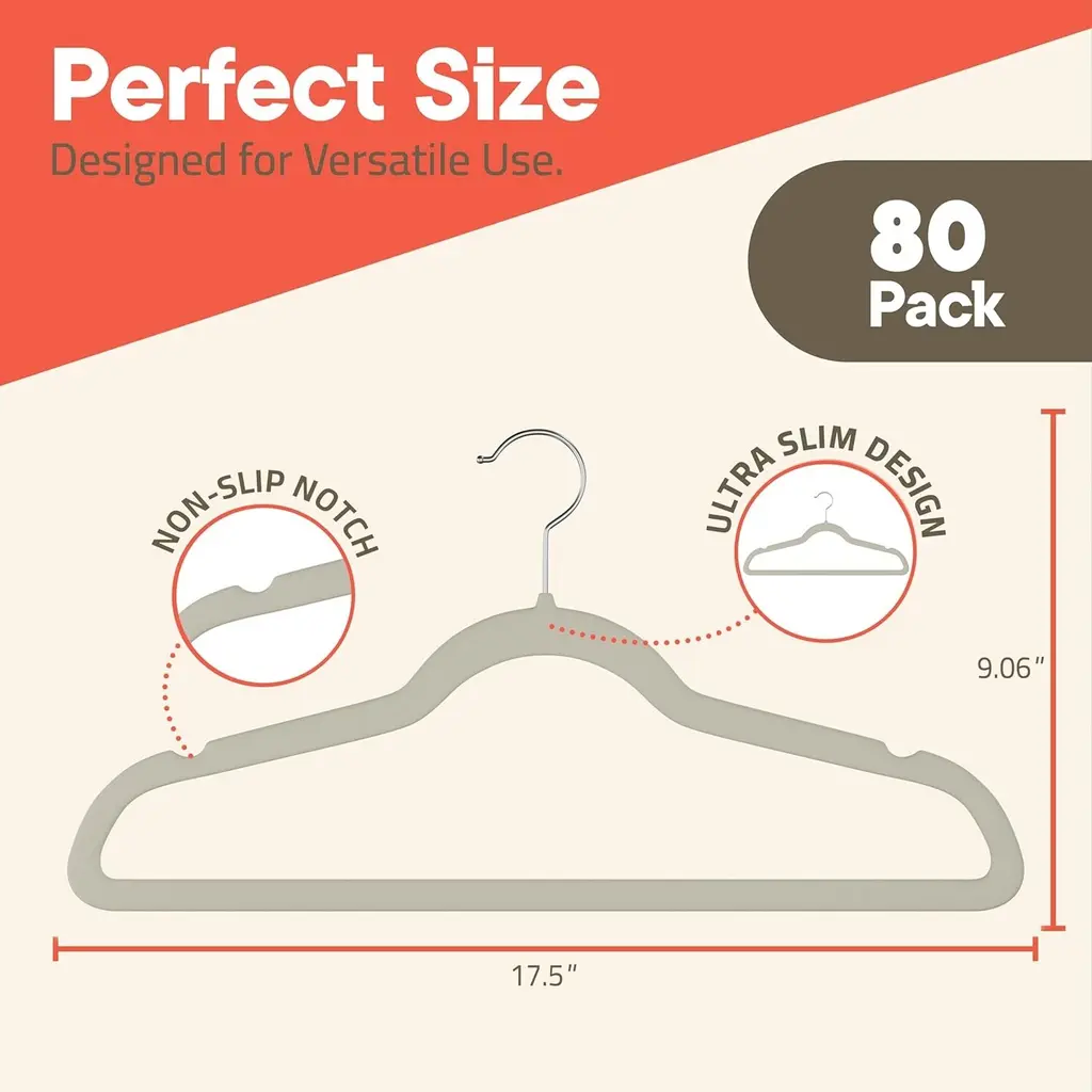 Ivory Velvet Hangers 360° Swivel Hook, Non-Slip And Space Saving Hangers, Heavy-Duty 11 Lbs Weight Capacity - Pack Of 80 - Ivory