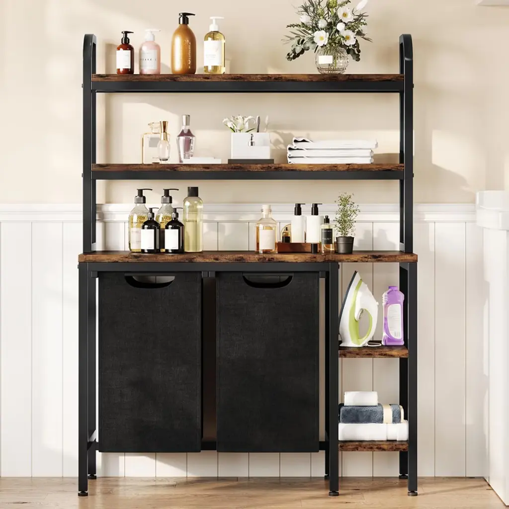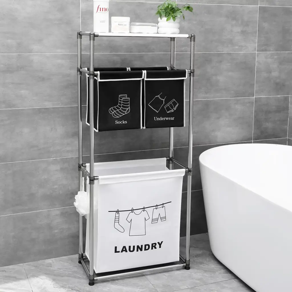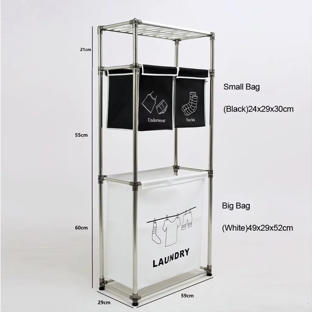 Elevate your laundry routine with our stylish and functional laundry hamper, crafted from waterproof MDF and a heavy-duty iron frame for lasting durability. Featuring three removable Oxford bags (100L total capacity) with reinforced bottoms, this hamper lets you sort clothes by color or fabric type effortlessly. The built-in shelves and side hooks offer extra storage, while four lockable TPR wheels ensure smooth mobility—perfect for keeping your space organized and clutter-free.
