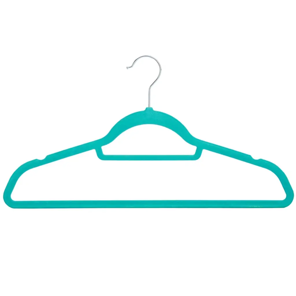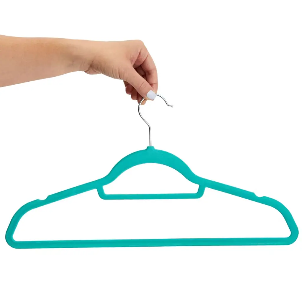 Juvale 50-pack Slim Non Slip Velvet Hangers With Cascading Hooks For Clothes, Heavy Duty Durable Hangers - Teal, 18 In
