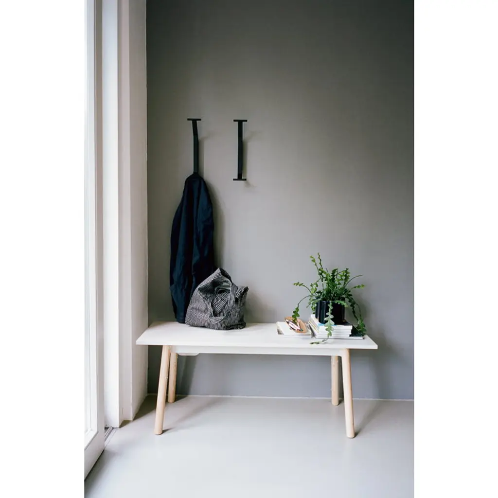 Artek's Kaari REB 014 wall hook continues the simple and sculptural style of the Kaari series. The hook, made of black powder coated steel and solid natural oak with a protective varnish, is well suited for hallways, offices and dressing rooms alike. The elegant Kaari collection was designed by Ronan and Erwan Bouroullec and launched at Stockholm’s Furniture Fair in 2015. As Alvar Aalto’s furniture was characterized by the L-leg, the Bouroullecs’ Kaari tables feature a unique leg system composed of vertical wood and bent steel. It became obvious during the design process that the legs could also be used to support wall-mounted objects such as shelves and consoles. The series has an attractive silhouette that is created by the wing-shaped steel structure. Kaari combines the traditional materials of Artek in a new and fresh way. Invest in a future classic and preserve it for generations to come.