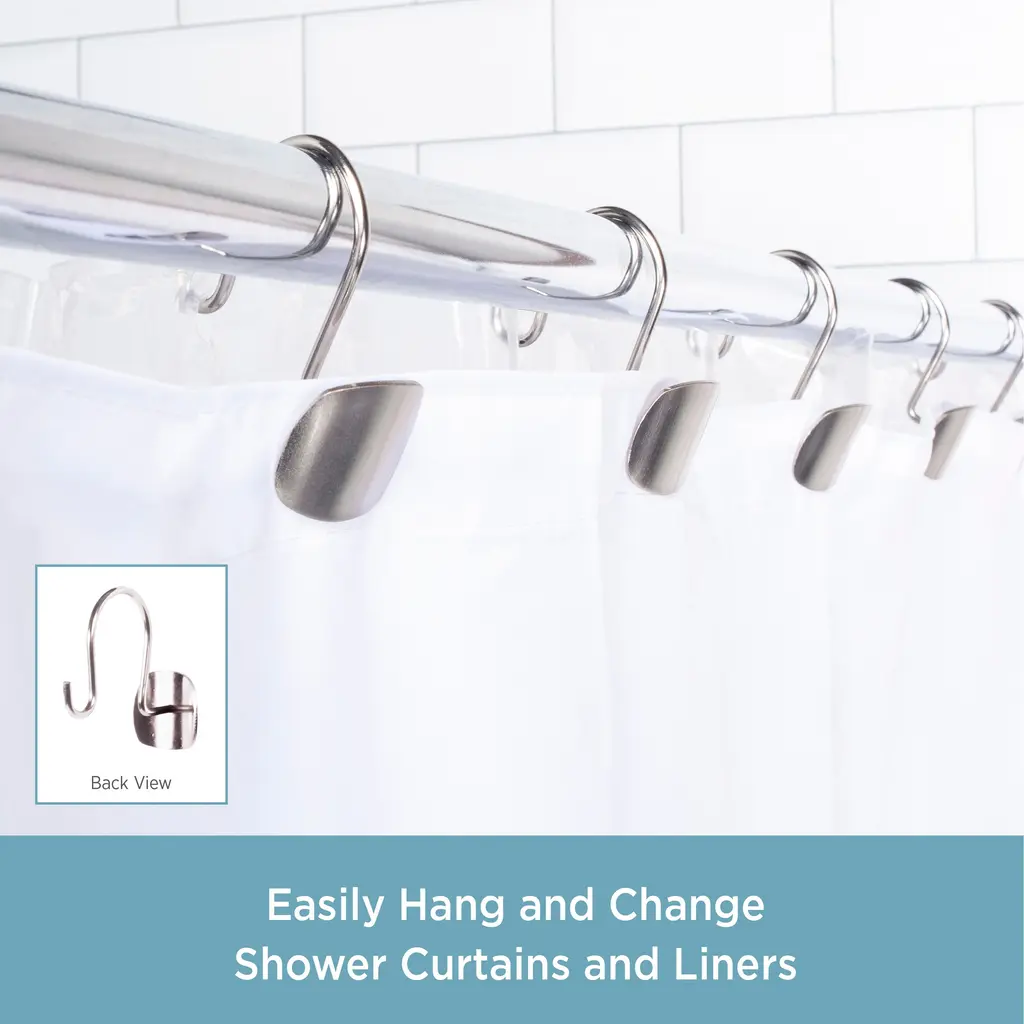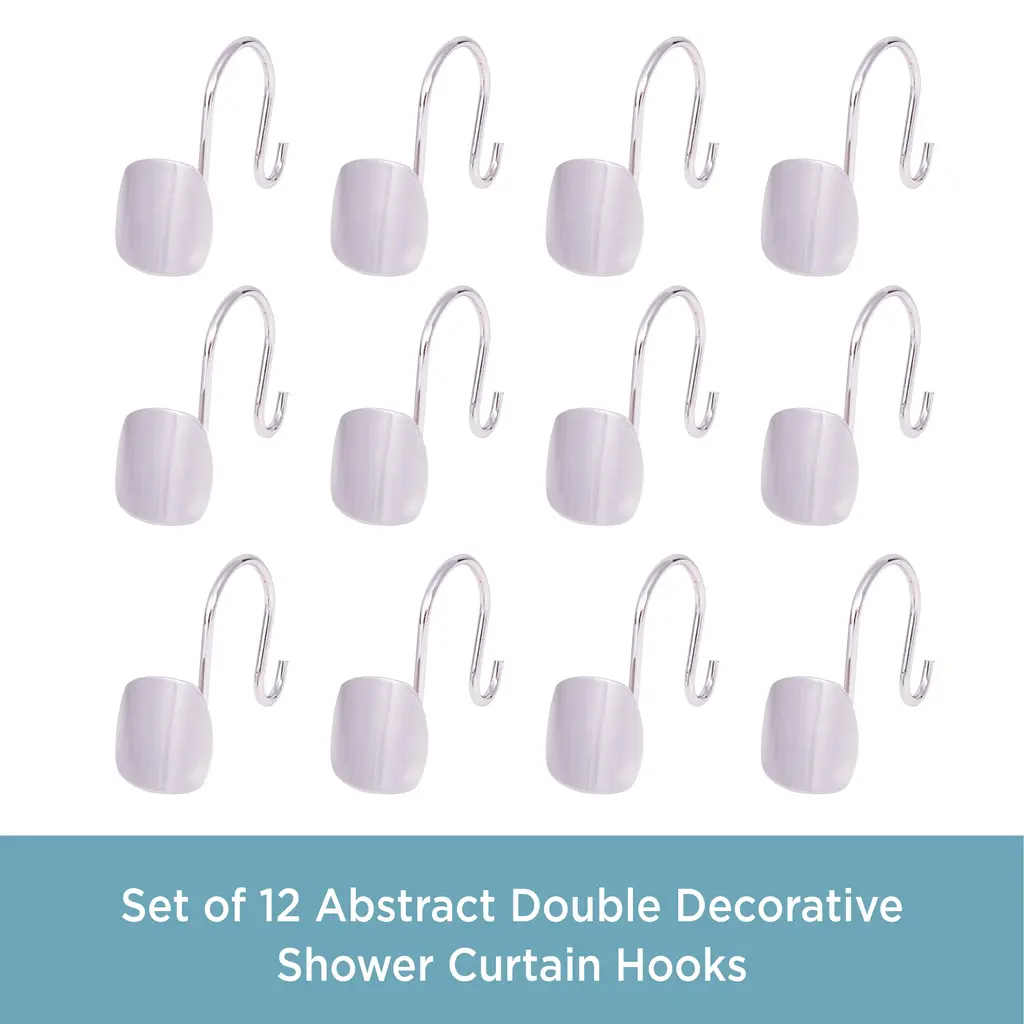 This set of twelve Kenney Abstract Double Decorative Shower Curtain Hooks are designed to coordinate with many bathroom hardware finishes. These Double Decorative Shower Curtain Hook allow you to conveniently hang both the shower curtain and liner without taking the hooks off the shower rod. With their decorative soft square abstract accents, they will seamlessly blend in with your bathroom decor, hiding the grommets from view. Each package includes 12 hooks, fitting all standard shower curtains and rods.
