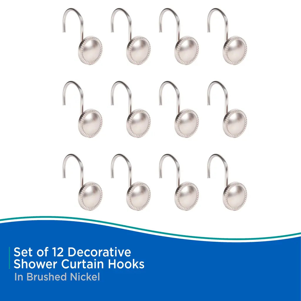 Kenney Erin Decorative Shower Curtain Hooks, Set Of 12 - Brushed Nickel - Brushed Nickel