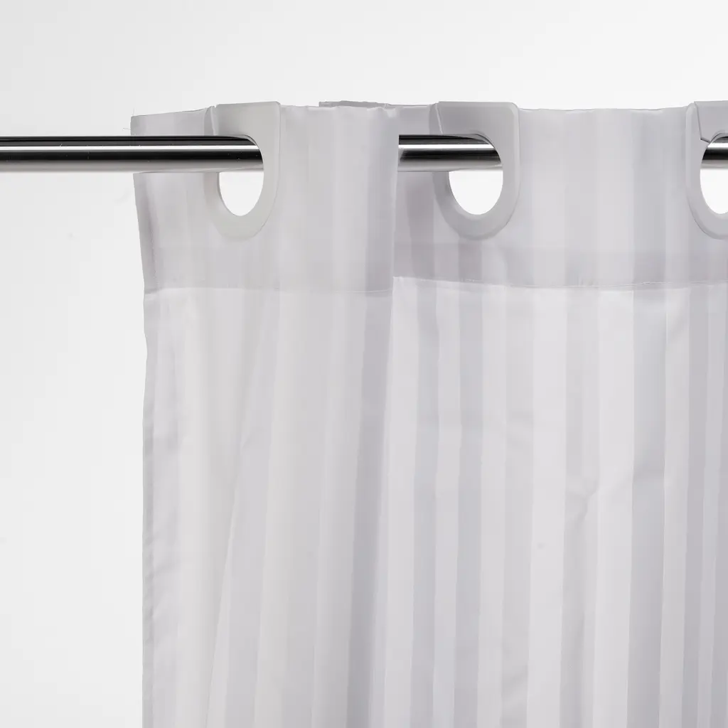 The Kenney FlexHook Medium Weight PEVA Shower Curtain Liner installs in seconds! The hook less shower curtain design means no more curtain rings and makes putting up your liner or taking it down almost effortless. With the built-in hinged flexible rings, you don't even need to remove the shower rod, the flex rings can just pop over the shower rod, easy-on and easy-off. Shower Curtain Liner is made of environmentally friendly PEVA, making it PVC-free and odorless. The weighted hem on the waterproof liner keeps the liner in place, so water stays in your bathtub and off of the floor.The liner measures 71 inches wide by 74 inches tall (180 cm x 188 cm) to fit most showers and bath tubs.