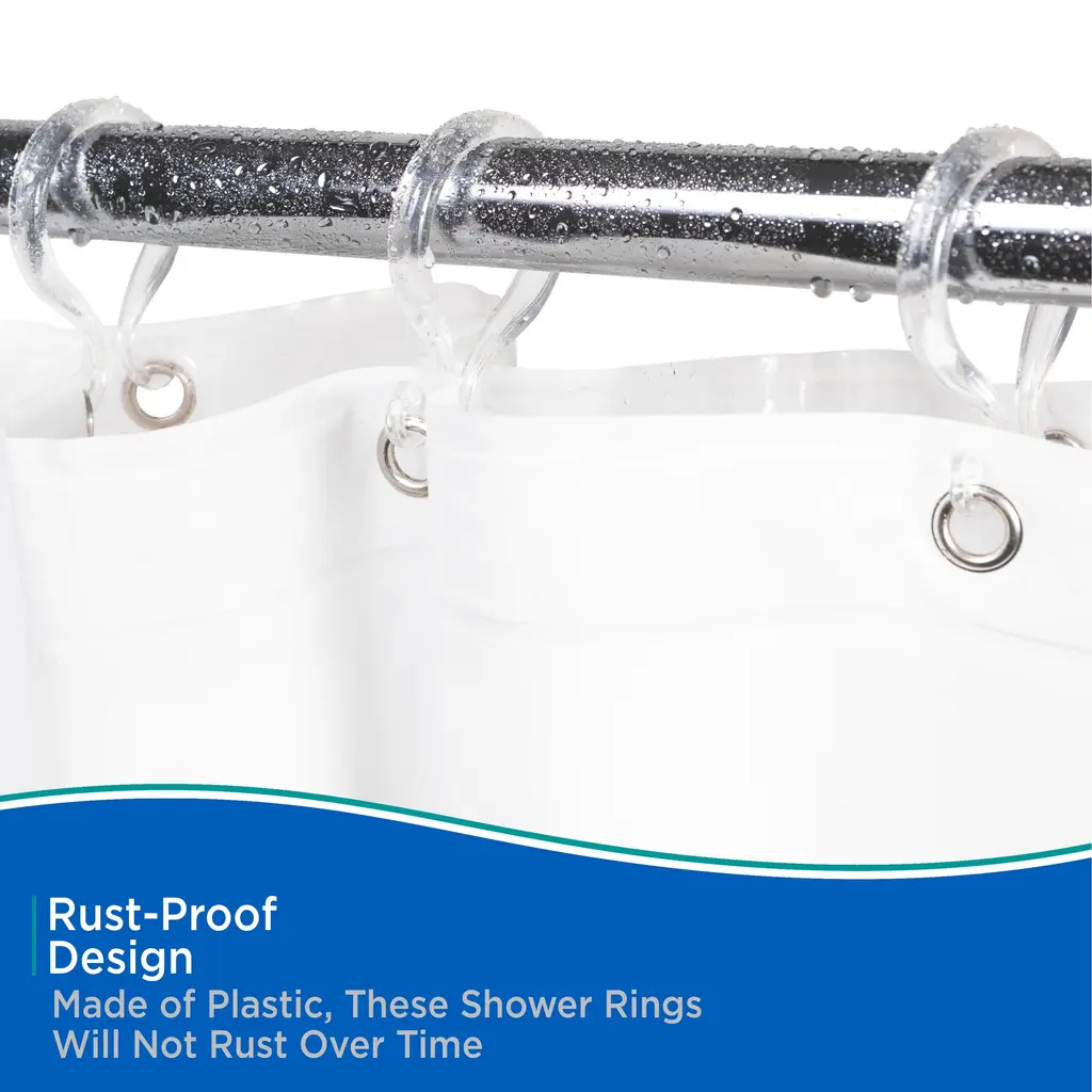This set of twelve Kenney Shower Curtain Double Hooks come in several base colors to coordinate with many bathroom hardware finishes. Made of plastic, these shower curtain hooks will not rust in your bath. With an additional hook on the back, use these to hang both a shower liner and a shower curtain separately, making it easy to remove or replace either. Each package includes 12 double hooks, fitting all standard shower liners and rods.