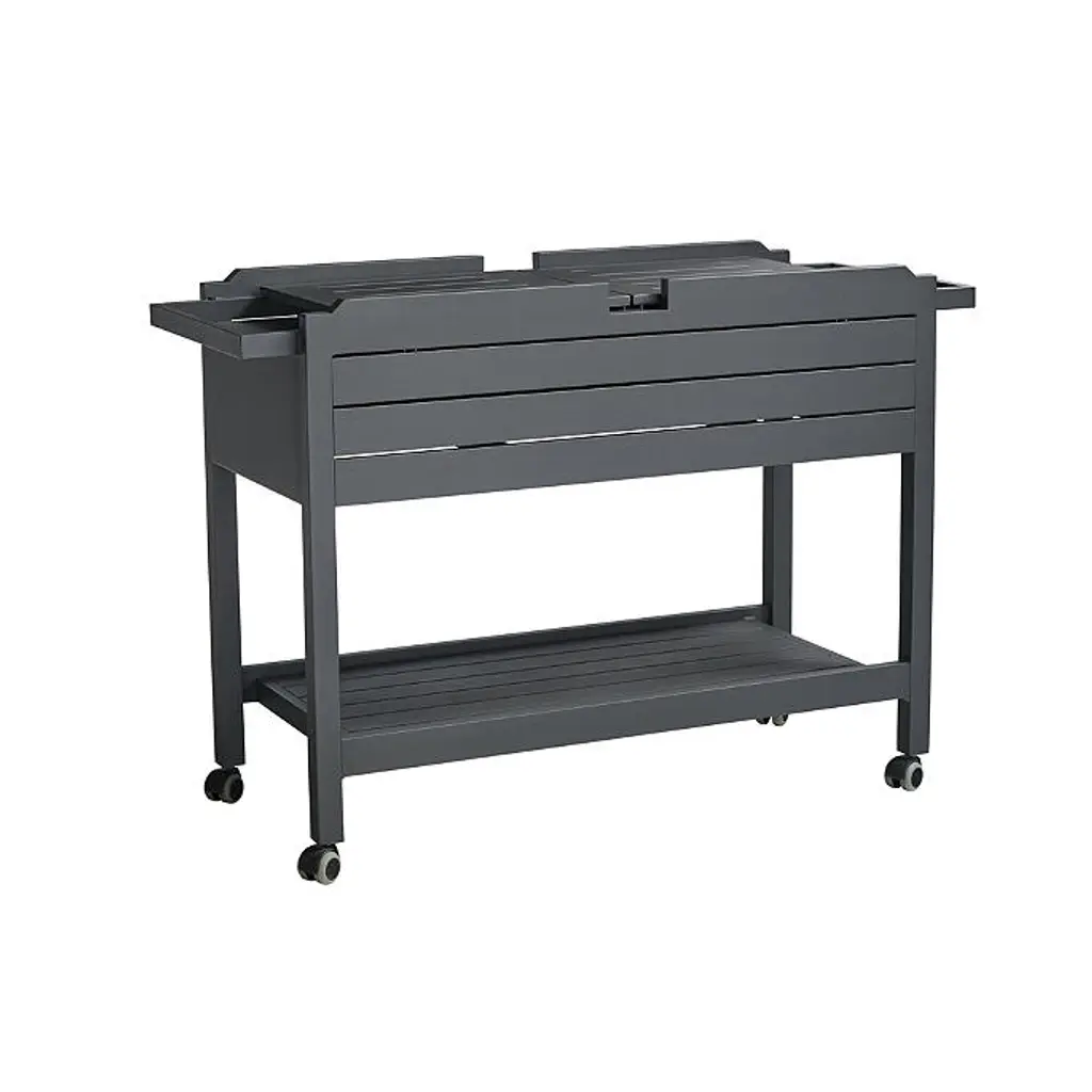 Transform your outdoor entertaining with the Keter Rolling Bar Cart. Crafted from durable polypropylene (PP) and a stainless steel top, this bar cart combines elegant design with practical functionality, making it an essential addition to any patio, deck, or backyard space. Imagine effortless gatherings where drinks are served with style. The size provides ample space for holding beverages, snacks, and bar accessories, all conveniently accessible from the inside cabinet. The cart's smooth-rolling wheels ensure easy mobility, allowing you to effortlessly transport it wherever the party goes. Built-in features like a handy bottle opener add convenience, while the stainless steel finish and neutral color complement any outdoor decor, creating a sophisticated ambiance. This grilling cart is weather-resistant and easy to clean, ensuring long-lasting durability and minimal maintenance. Featuring a robust construction, this utility cart not only guarantees years of reliable use but also showcases Keter's commitment to quality craftsmanship. Ideal for both personal use and gifting, the prep and serving table is a versatile solution for anyone looking to elevate their outdoor living space. Experience the joy of effortless entertaining and timeless elegance with this essential outdoor furniture piece. Whether hosting poolside parties, outdoor barbecues, or simply enjoying a sunny afternoon, the Keter Rolling Bar Cart enhances the experience with its blend of practicality and aesthetic appeal.