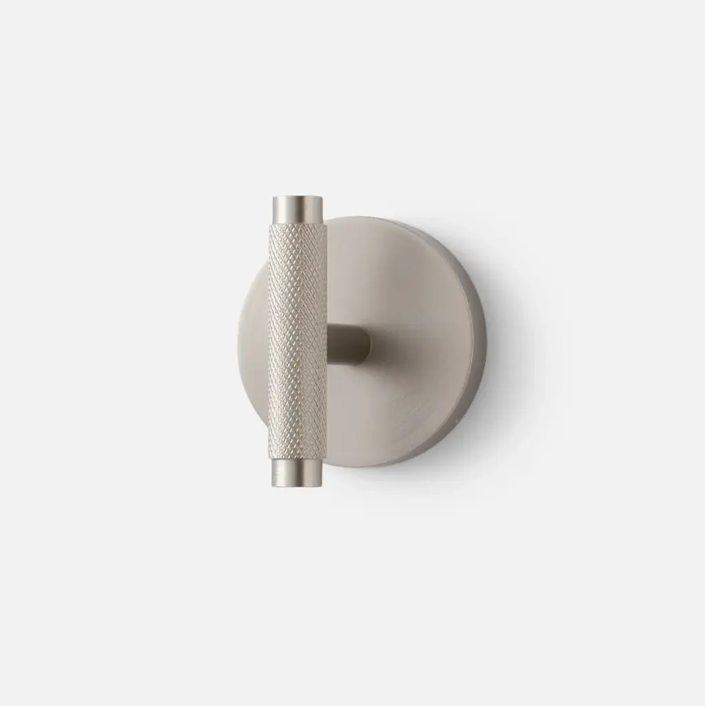 Named for its diamond pattern knurling, the Knurled Hook has a modern textured design that offers extra grip and catches the light beautifully. Choose from a variety of finishes, all made of solid brass, and pair it with other hardware from the collection for a seamless look.Shop the Knurled Hardware Collection.