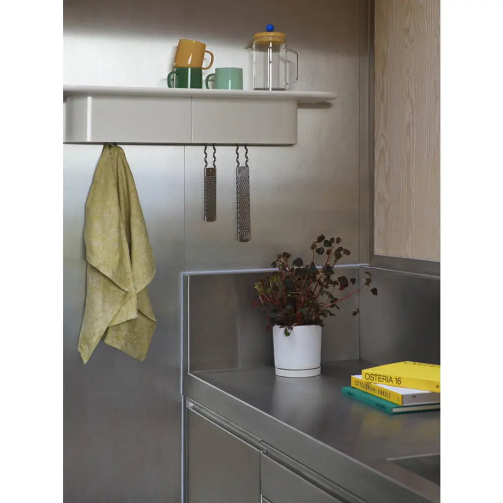 HAY's Korpus is a delightfully multi-purpose wall shelf that also serves as a hanging rack: inside the beautiful, curved frame you’ll find seven cleverly concealed hooks, on which it is easy to hang everything from a jacket or towel to accessories. Created by Norwegian designer Andreas Bergsaker, the Korpus shelf is made of durable and light aluminum and it can just as well be placed in the hallway, kitchen or bathroom. The fun and functional Korpus shelves are a great addition individually, but they can also be used to create a stunning storage system by combining shelves of different sizes.